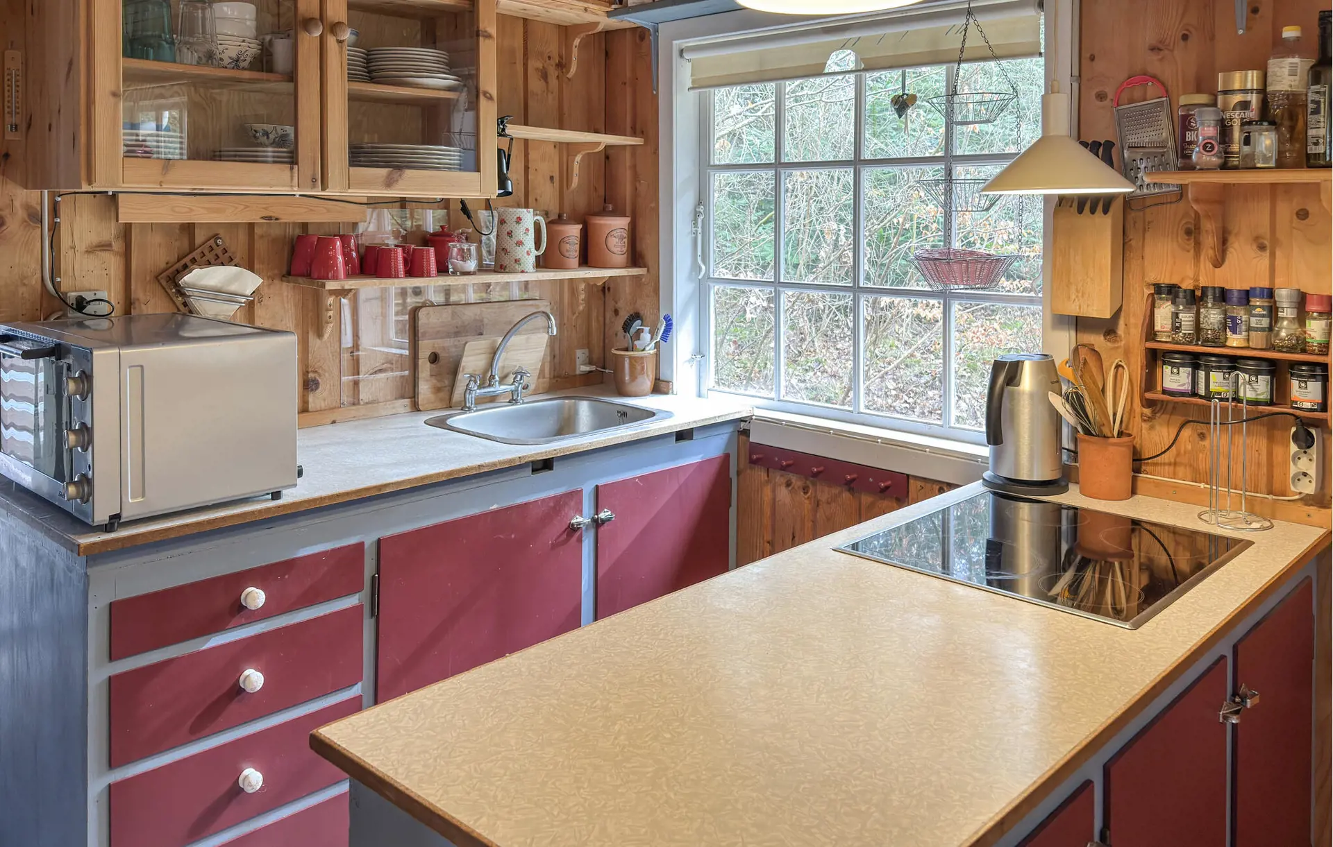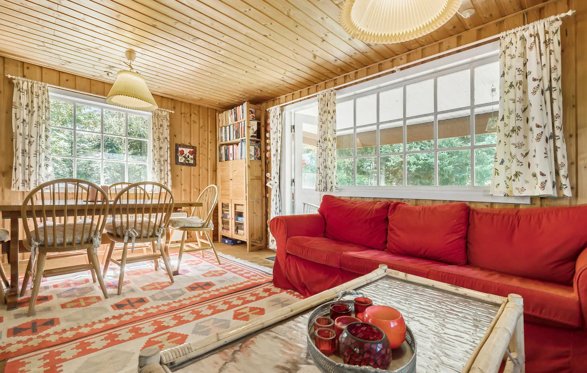 Dieses von viel Grün umgebene Haus empfängt Sie mit einer gemütlichen Atmosphäre. Ein Kaminofen, bequemes Mobiliar und eine praktische Küche sorgen dafür, dass Sie sich schnell zuhause fühlen. Liebevoll ausgesuchte Details geben den Räumen darüber hinaus eine persönliche Note. Egal ob Sie einen vergnügten Spielenachmittag verbringen oder gemeinsam kochen, hier können Sie schnell abschalten.