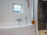 Dieses gemütliche Ferienhaus mit Whirlpool bietet eine ruhige Lage, wo Entspannung und Gemütlichkeit Hand in Hand gehen. Das Haus liegt auf einem großen, ungestörten Grundstück mit viel Platz zum Spielen und Entspannen, in der Nähe des Wassers und eines kinderfreundlichen Strandes – perfekt für alle, die die Natur genießen, Kajak fahren oder Kitesurfen ausprobieren möchten. Im Haus befinden sich drei geräumige Schlafzimmer mit viel Platz zum Schlafen sowie ein Badezimmer und ein zusätzliches WC – ideal für Familien und Freunde. Die offene Wohnküche mit Dachschräge und großen Fenstern schafft eine helle und einladende Atmosphäre. Hier gibt es viel Platz zum gemeinsamen Kochen, Spielen und für gemütliche Momente. Im Wohnzimmer können Sie sich bei einem guten Film entspannen oder Sport im Fernsehen mit verschiedenen Kanälen verfolgen. Von der Wohnküche aus gelangen Sie direkt in den Garten und auf eine große Terrasse – teils überdacht, teils offen – sodass Sie immer ein sonniges oder schattiges Plätzchen finden. Der Garten bietet zahlreiche Möglichkeiten zum Spielen und Entspannen, darunter eine Rasenfläche, eine Schaukel und einen Sandkasten.