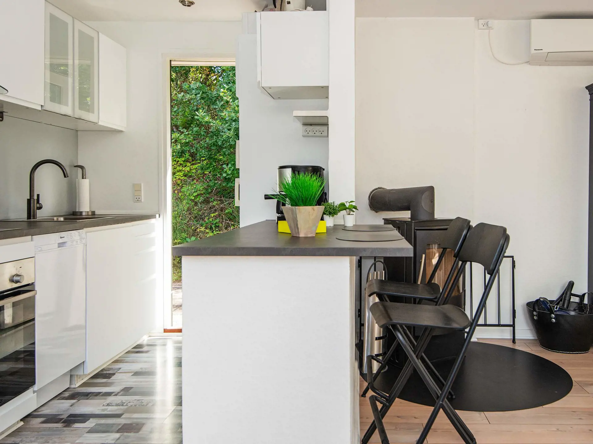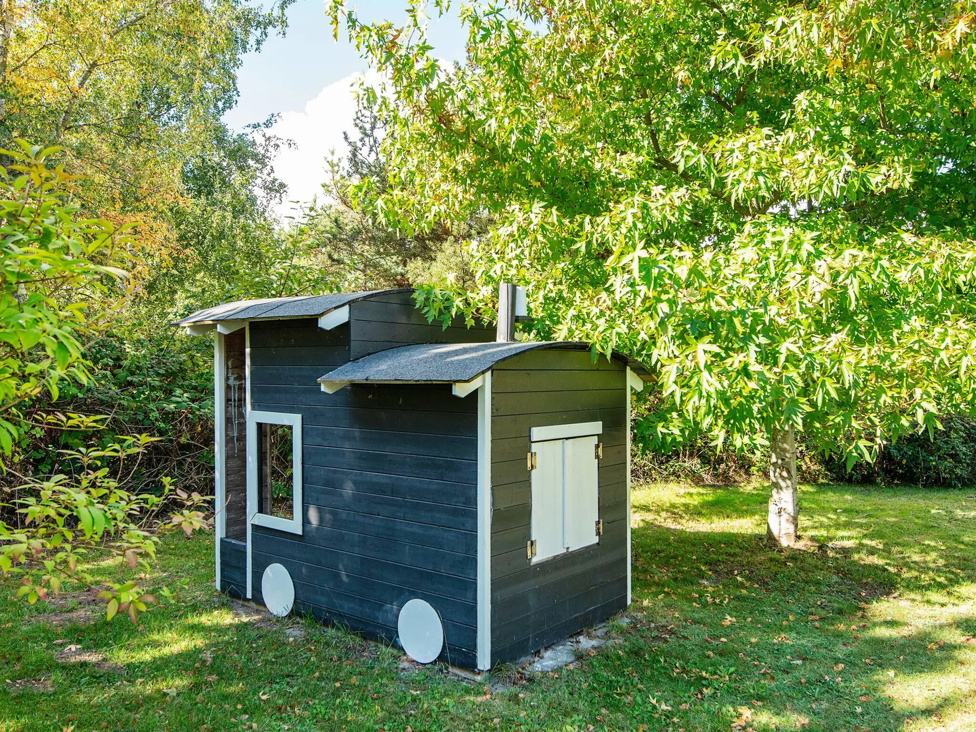 Draußen finden Sie eine große Terrasse mit Platz zum Essen oder Lesen eines Buches. Große Rasenfläche mit Spielhaus für die Kinder, während die Erwachsenen sicher ein Bad im schönen Badezuber auf der Terrasse vorziehen. Das Ferienhaus liegt in landschaftlich reizvoller Umgebung, nicht weit von Øer Maritime oder einer Radtour auf einer MTB-Strecke entfernt.