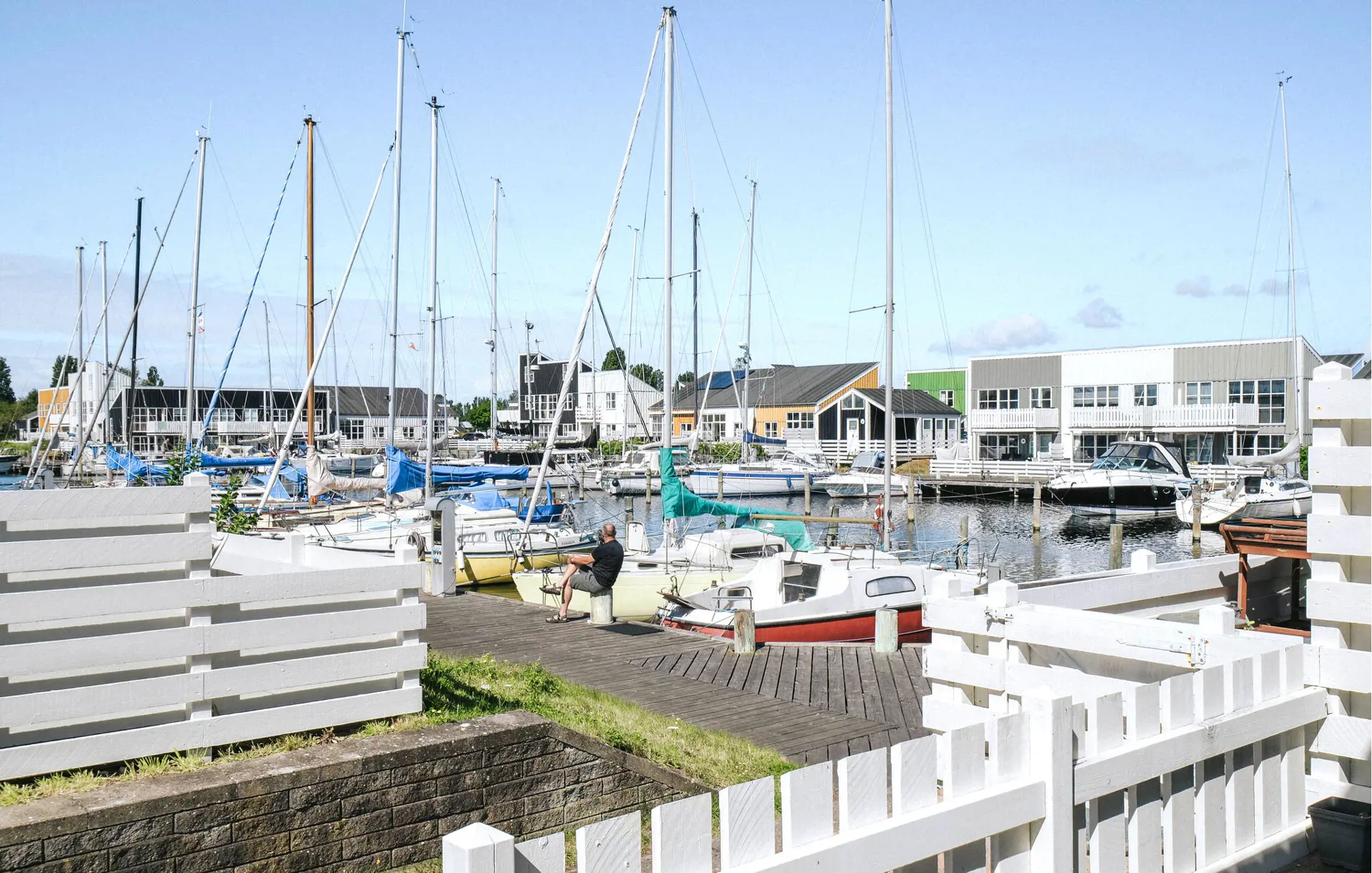 Starten Sie den Tag an der frischen Luft und genießen Sie die wärmenden Sonnenstrahlen. Auf der großzügigen Terrasse sitzen Sie nur wenige Schritte vom Wasser entfernt und beobachten die Boote, die sanft im Hafen liegen. Nutzen Sie die verschiedenen Sitzbereiche auf beiden Seiten des Hauses, um ein Buch zu lesen, eine Pause einzulegen oder den ruhigen Bewegungen am Steg zuzusehen. Freuen Sie sich auch auf den gemeinsamen Innenpool und die gemeinsame Sauna.
