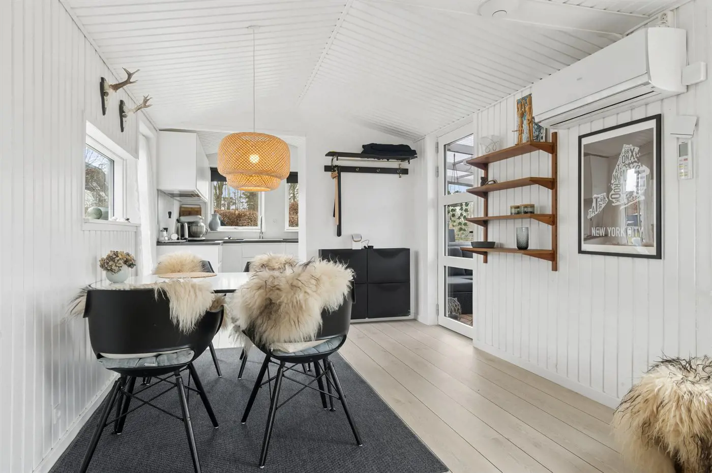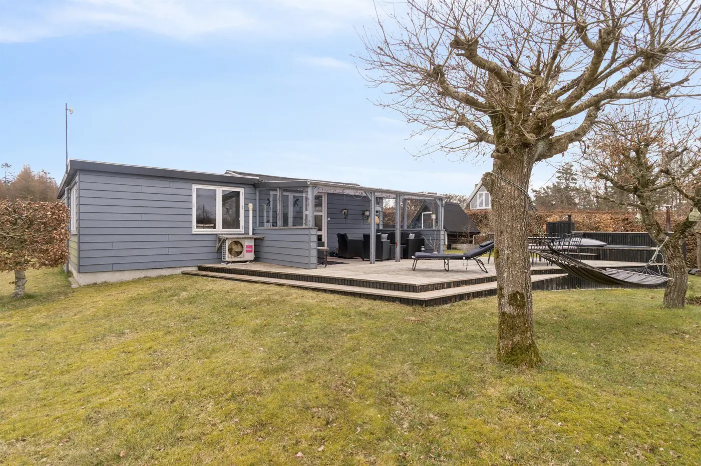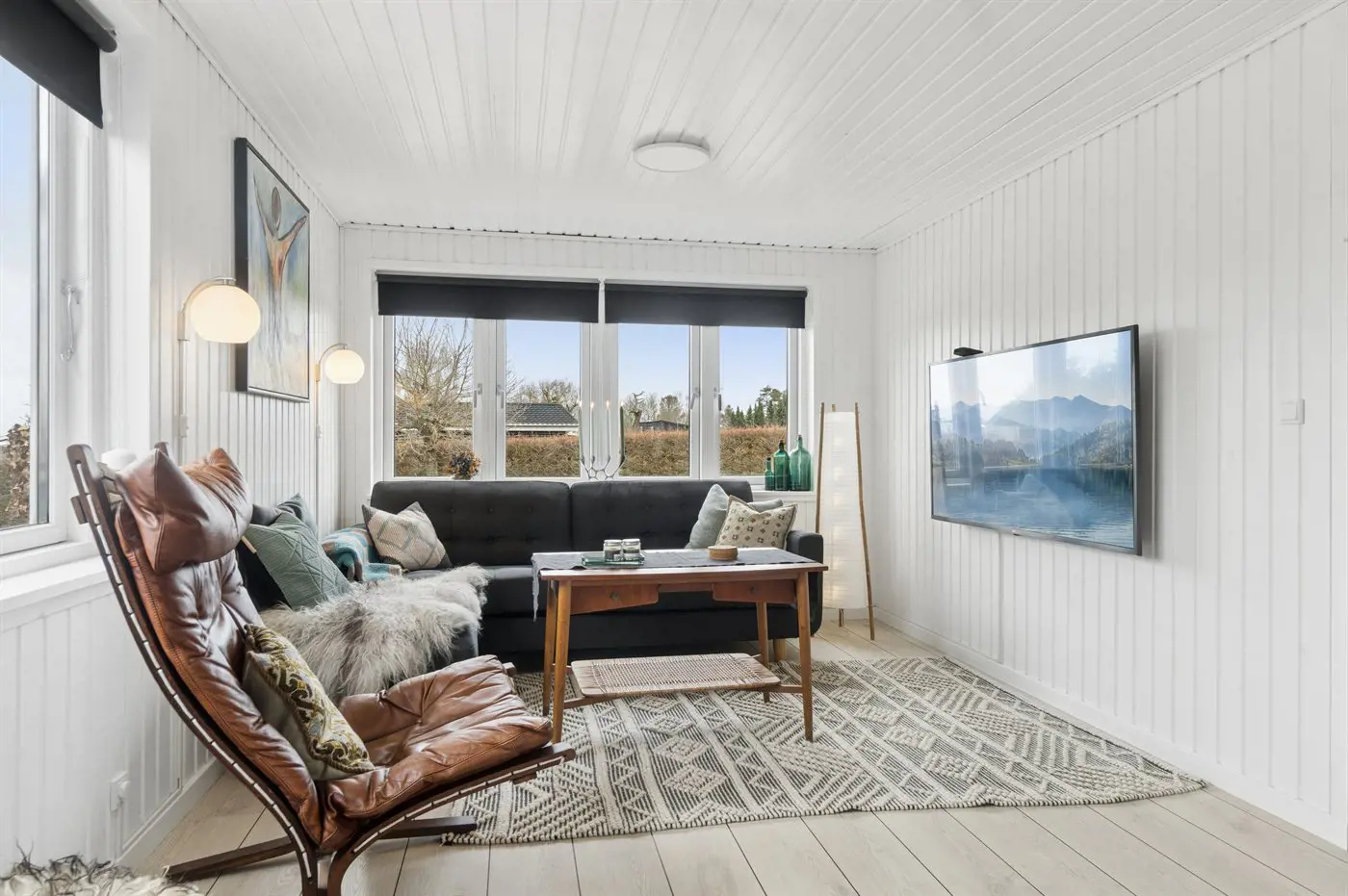 2 Smart-TV. 1 Apple-TV.1 Bluetooth-Lautsprecher. 1-3 dänische Fernsehsender. Es steht kabellose Internetverbindung zur Verfügung.