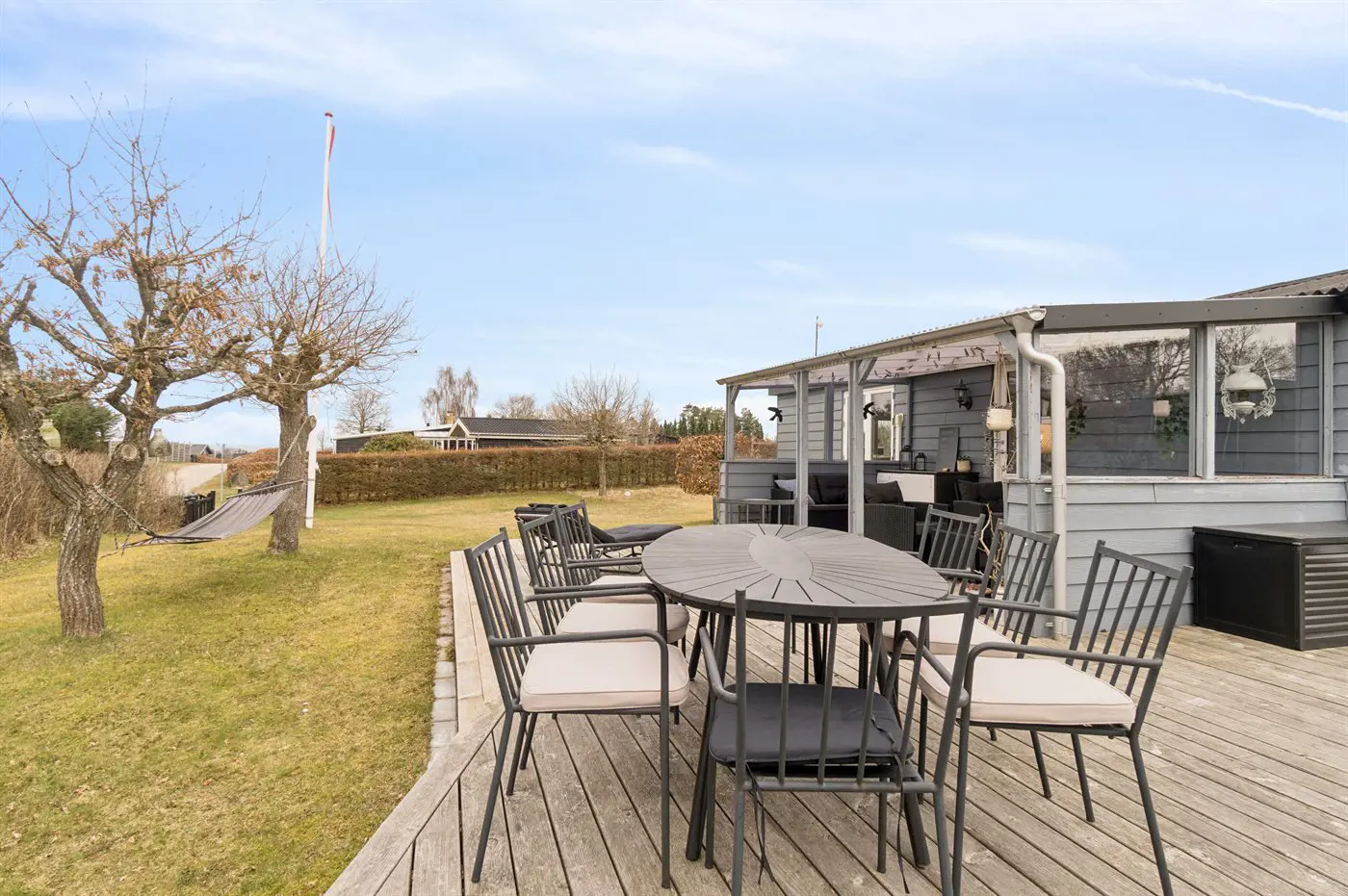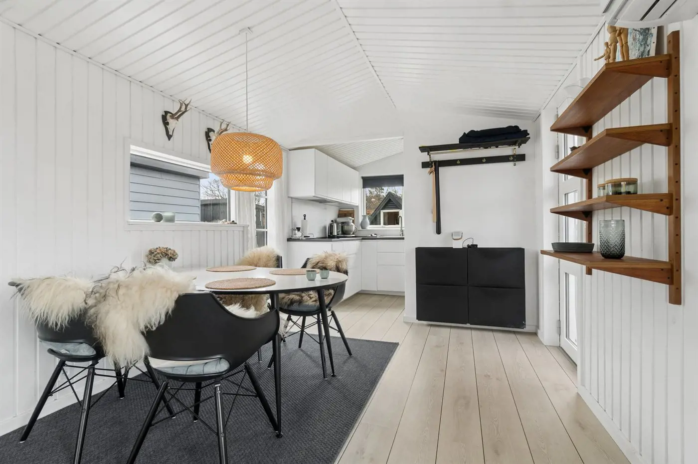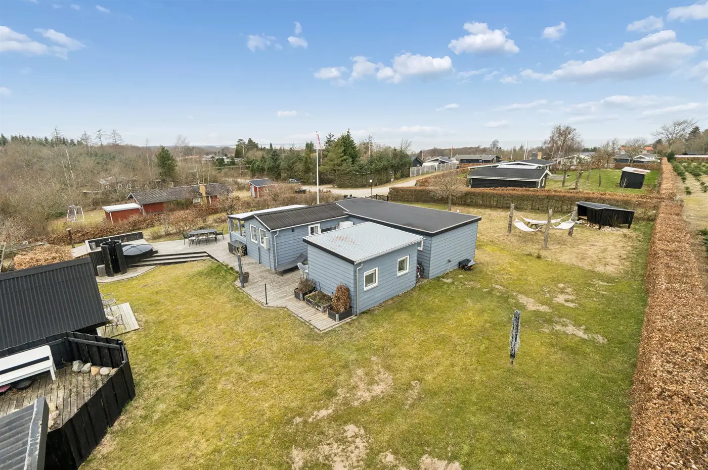 2 Smart-TV. 1 Apple-TV.1 Bluetooth-Lautsprecher. 1-3 dänische Fernsehsender. Es steht kabellose Internetverbindung zur Verfügung.