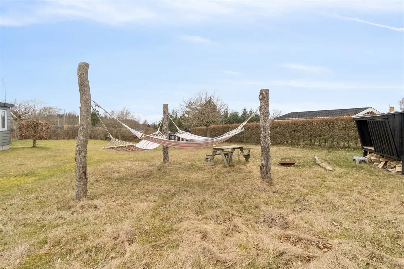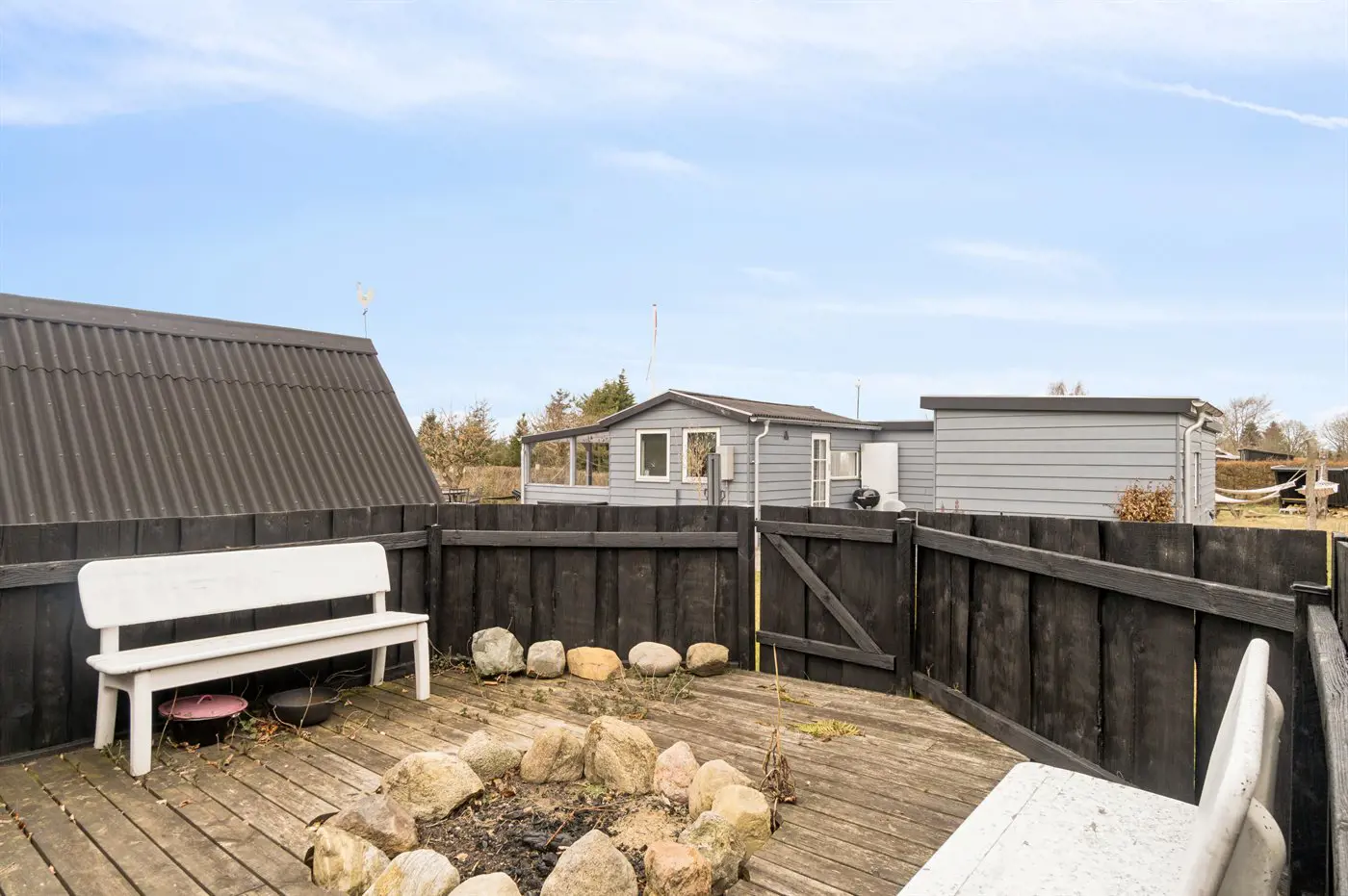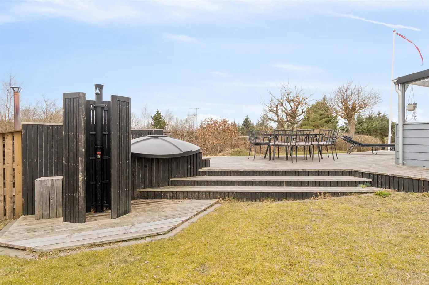 Die Ferienunterkunft liegt auf einem 1217 m² großen Naturgrundstück. Das Grundstück ist eingezäunt. Die Entfernung zum Meer beträgt 1200 m. Die nächste Einkaufsmöglichkeit liegt 4000 m entfernt. Es steht ein offenes Terrassenareal zur Verfügung. Außerdem gibt es überdachte Terrasse.Lagerfeuerstelle. Windschutzhütte. Außendusche. Es steht ein Grill zur Verfügung. Parkplatz auf dem Grundstück.