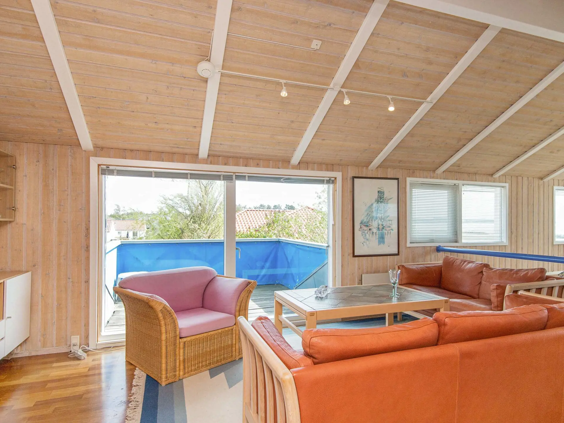 Im Inneren des Hauses befindet sich im Erdgeschoss ein offener, geräumiger Küchen-/Essbereich mit Platz für das Familienleben und für das gemeinschaftliche Zubereiten der Mahlzeiten, die anschließend mit Aussicht zur Ostsee eingenommen werden können. Meerblick bietet ebenfalls der Balkon vor dem Wohnzimmer in der ersten Etage, wo es zudem einen Kaminofen für kühlere Abende gibt.
