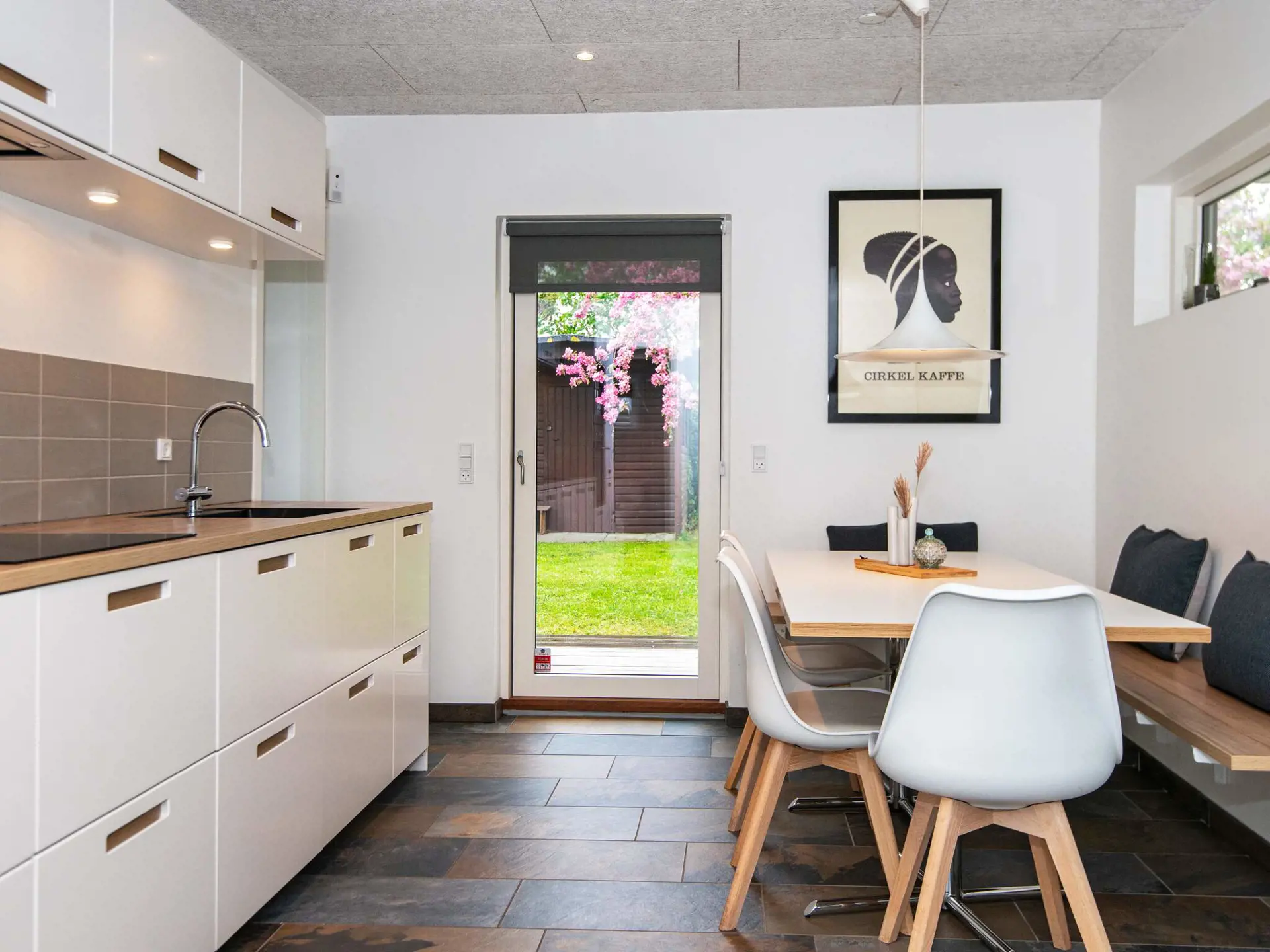 Attraktives Ferienhaus, 2017 komplett renoviert. Von dem ursprünglichen Haus blieben nur die Außenwände stehen, ansonsten ist alles neu durchdacht und gestaltet worden. Mobiliar und Einrichtung wurden komplett ausgetauscht. Im Haus offener Küchen-/Wohnbereich, ideal für eine Familie. Außerdem drei Schlafzimmer mit jeweils zwei Schlafplätzen und ein zeitgemäßes Bad mit Dusche/WC. Draußen auf der großen Terrasse, die teilweise überdacht ist, spielt sich im Sommer sicher ein großer Teil des Familienlebens ab, sei es bei den Mahlzeiten des Tages, den Grillabenden oder bei Spiel und Spaß auf dem Naturgrundstück mit schützenden Bäumen. Dank der guten Isolierung und Fernheizung, halten sich die Heizkosten in Grenzen. Die Kleinstadt Ebeltoft, mit ihren hübschen Läden und Gaststätten sowie guten Einkaufsmöglichkeiten, ist vom Haus aus auch zu Fuß erreichbar.