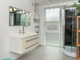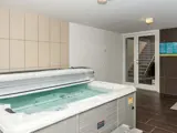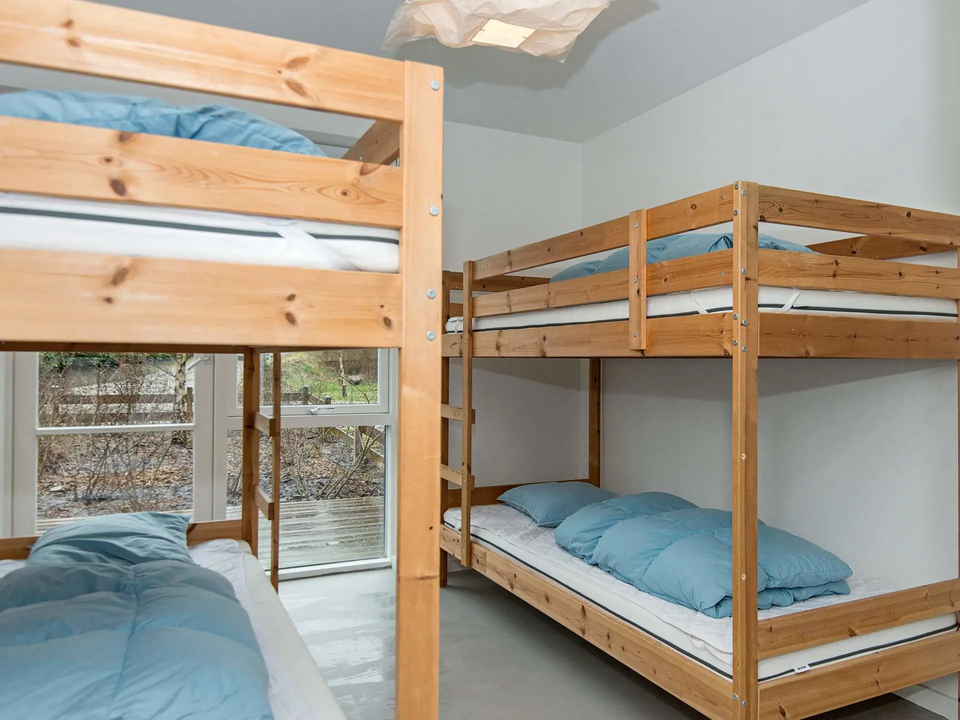 Das Haus hat zwei Etagen und insgesamt 16 Schlafplätze. In der unteren Etage liegen vier Schlafzimmer, ein Bad mit Dusche, Whirlpool und Saunabereich mit Liegestühlen. Im Obergeschoss befindet sich ein offener Küchen-/Aufenthaltsbereich mit Wohnzimmer und Aktivitätsmöglichkeiten. Im Aktivitätsraum steht auch die doppelte Schlafcouch bereit.