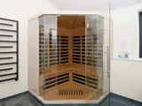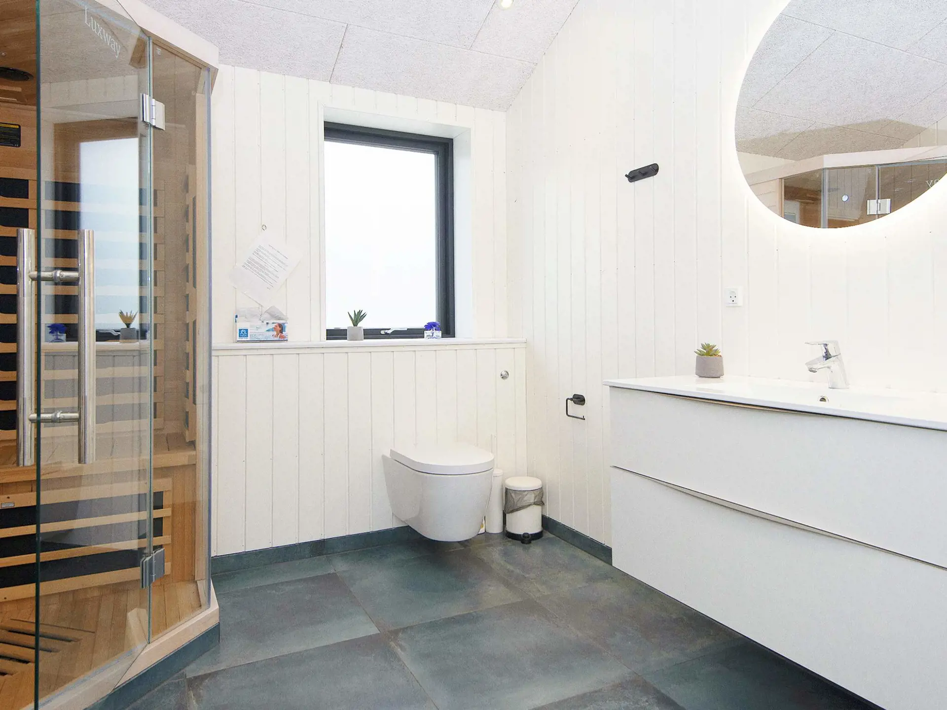Es gibt sechs Schlafzimmer sowie zwei Badezimmer mit Dusche im Haus, eines davon zudem mit Infrarotsauna und direktem Zugang zur Terrassenfläche, wo der Whirlpool für max. 8 Personen aufgestellt wurde.