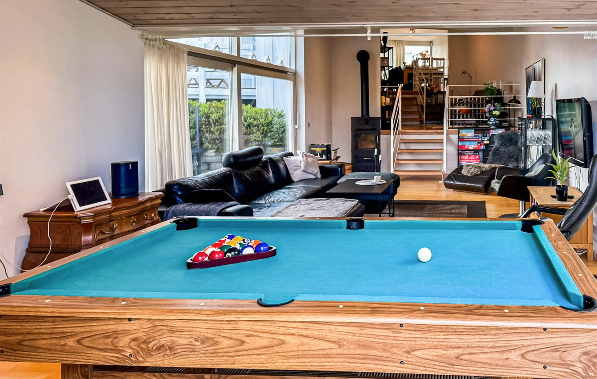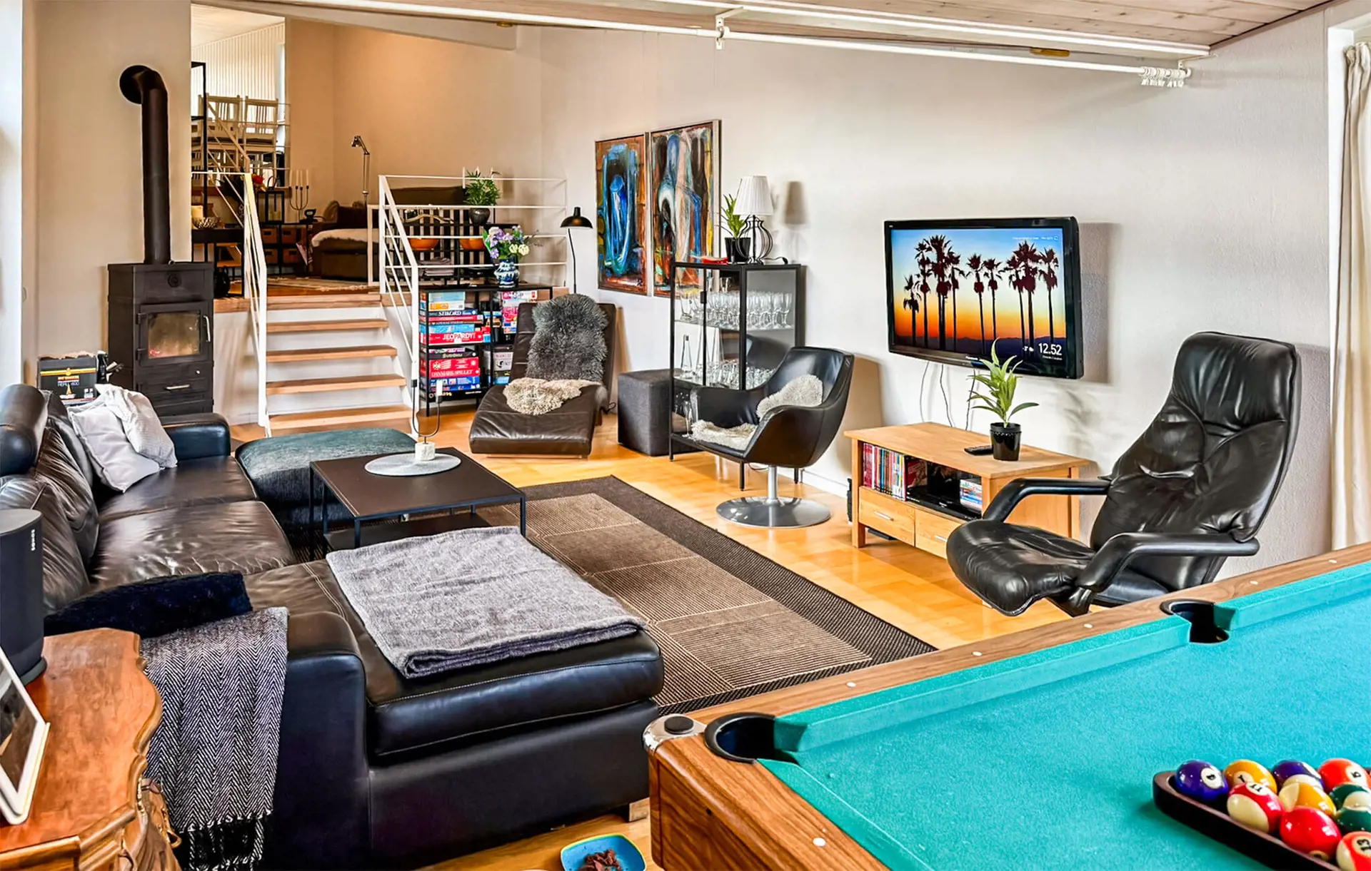 Dieses ruhig gelegene Haus ist ein einladender Rückzugsort, in dem viel Holz, ein bequemes Sofa und ein großes Bücherregal eine warme, persönliche Atmosphäre schaffen. Hören Sie Musik, machen Sie es sich mit einer Tasse Tee gemütlich oder verbringen Sie entspannte Stunden mit Karten- und Brettspielen. Kochen Sie gemeinsam, genießen Sie die Mahlzeiten in geselliger Runde und lassen Sie den Alltag ganz bewusst hinter sich.