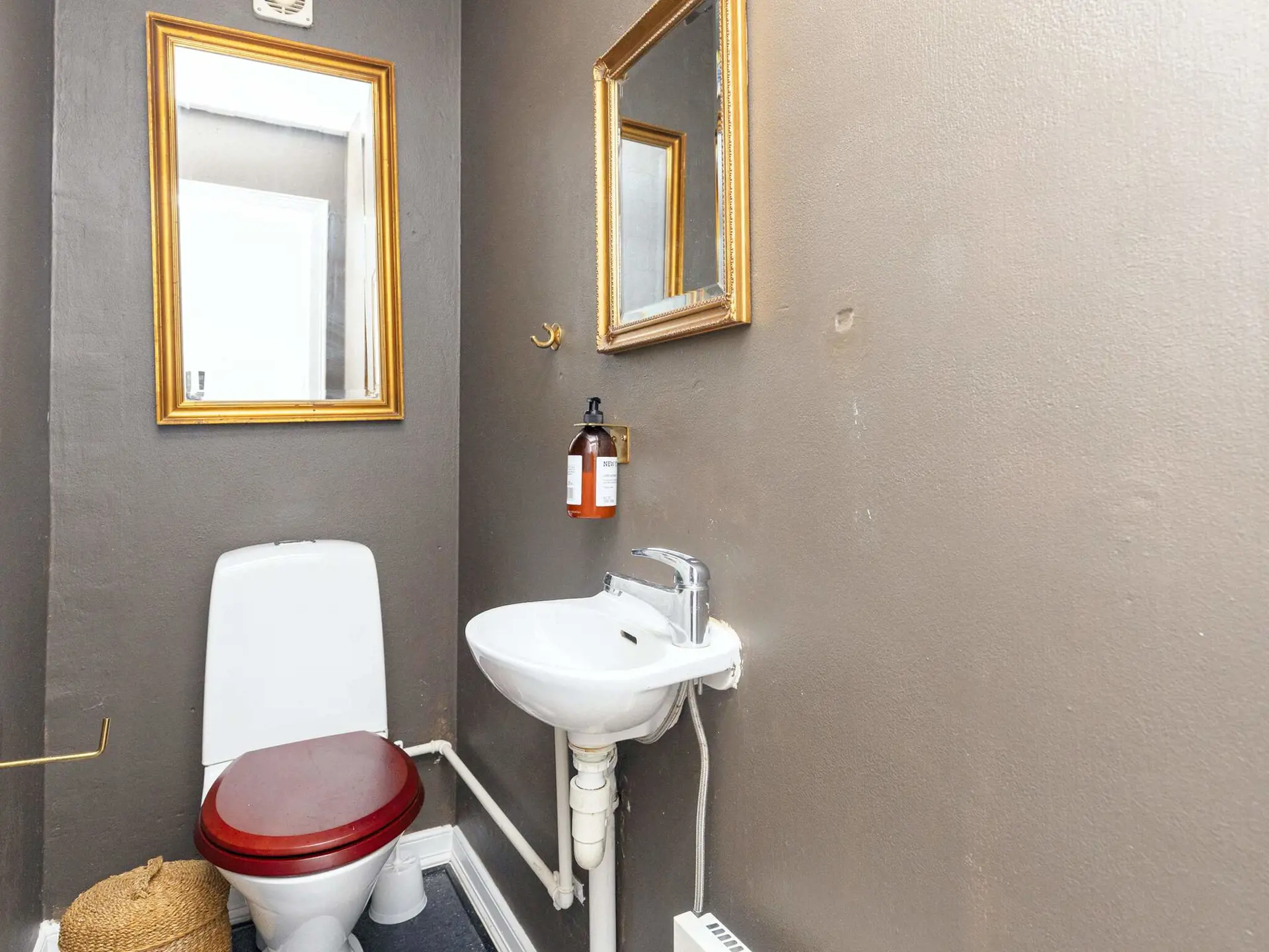 Das Ferienhaus erstreckt sich über zwei Etagen. Im Erdgeschoss befinden sich Eingangsbereich, Küche, kleines WC, Wohnzimmer und ein kleiner Wintergarten. Im ersten Stock befinden sich die Schlafzimmer, bestehend aus einem Zimmer mit Doppelbett, einem Zimmer mit zwei Einzelbetten und einem Zimmer mit Doppelbett. Außerdem gibt es ein Badezimmer mit WC, Waschbecken und Dusche. Die Küche verfügt über Elektrokochplatten, einen separaten Backofen und einen Kühl-Gefrierschrank. Das Wohnzimmer bietet einen Fernseher mit Chromecast, Internet und einen Holzofen.