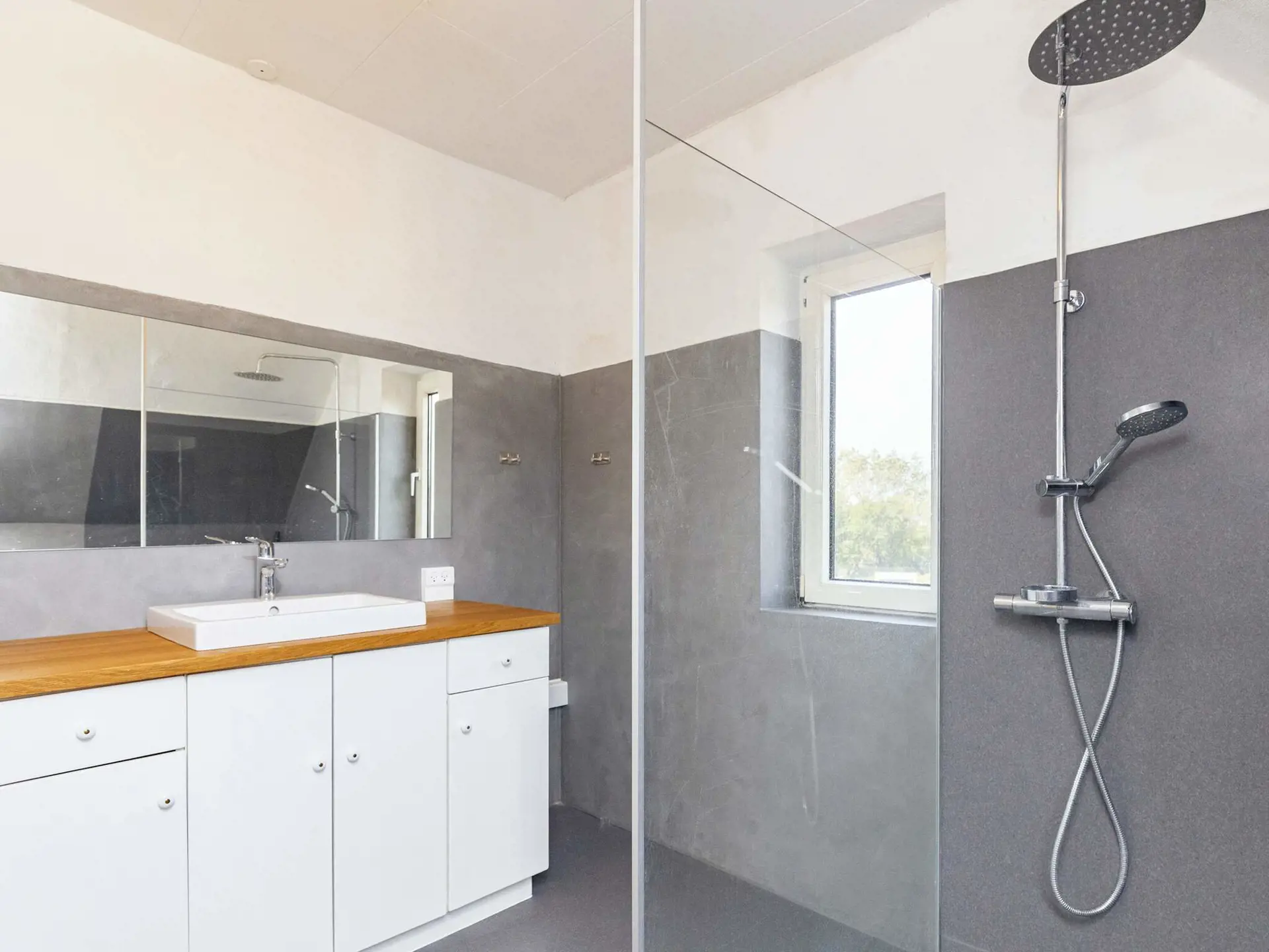 Es gibt insgesamt fünf Schlafzimmer, davon drei Zimmer mit Doppelbetten und zwei Zimmer mit Einzelbetten, sowie vier Schlafplätze auf dem Dachboden mit Matratzen. Zusätzlich gibt es ein Kinderbett.