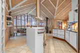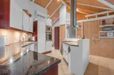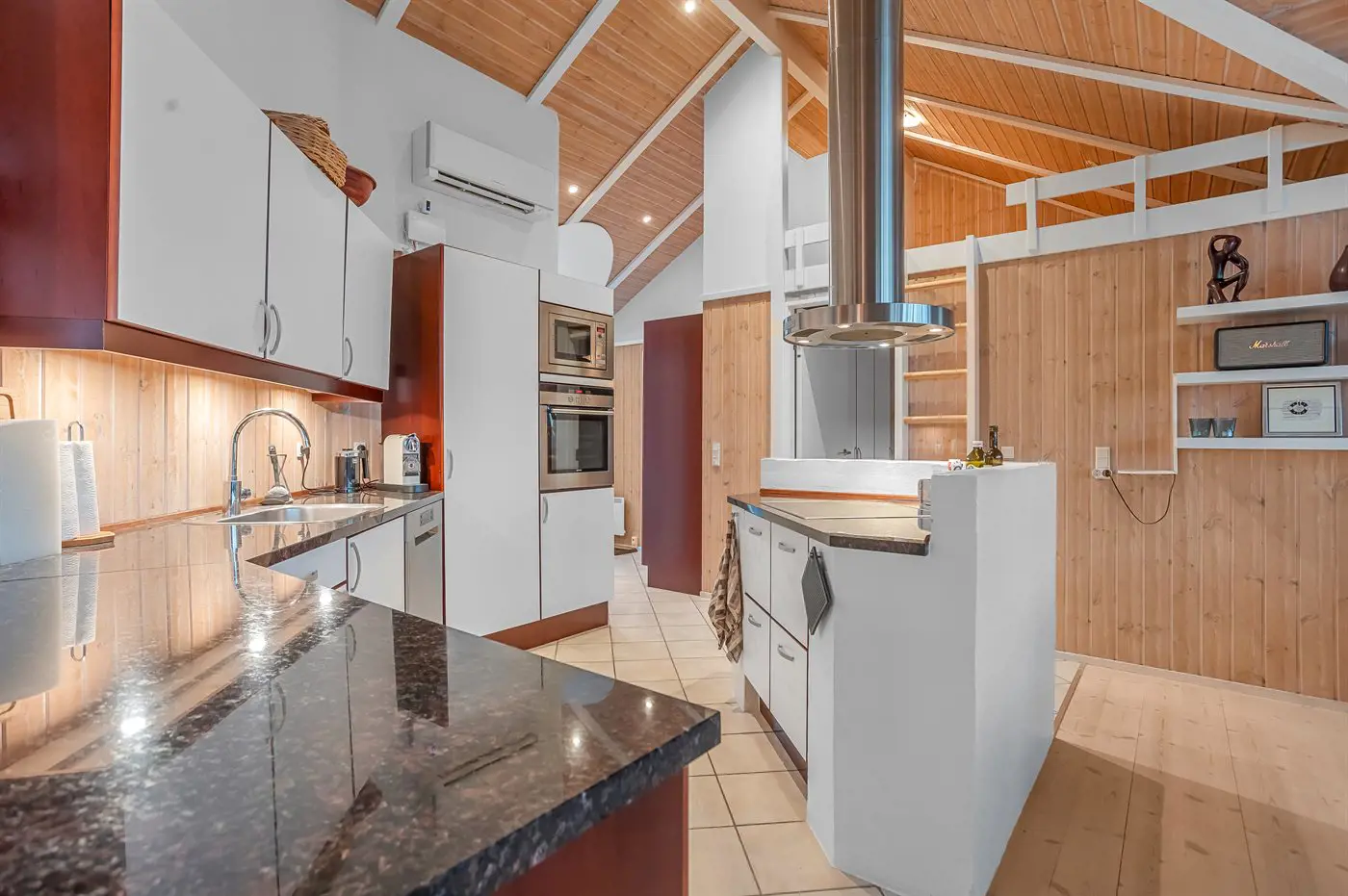 Die Küche ist mit Kühlschrank ausgestattet. Außerdem gibt es 4 elektrische Kochplatten, Umluftofen, Mikrowelle sowie Geschirrspüler. Fußbodenheizung in der Küche.