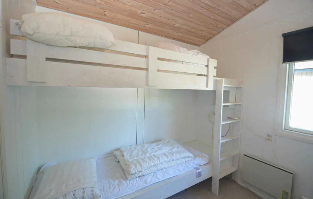 Das Haus verfügt über 3 Schlafzimmer mit insgesamt 5 Schlafplätzen: 1 mit Doppelbett, 1 mit Einzelbett und 1 mit Etagenbett. Außerdem gibt es zwei Badezimmer mit Dusche, was besonderen Komfort für mehrere Gäste bietet.