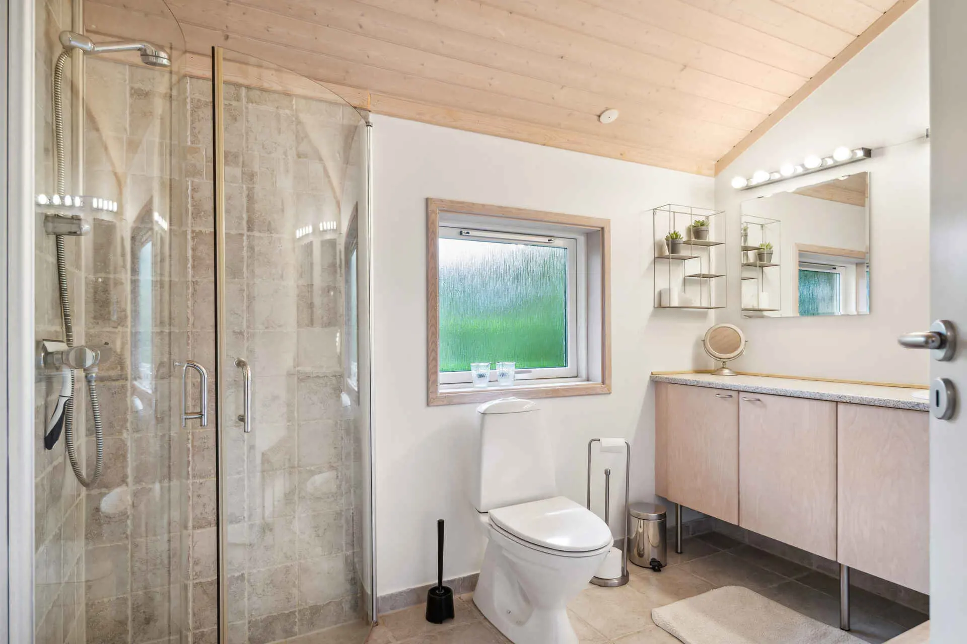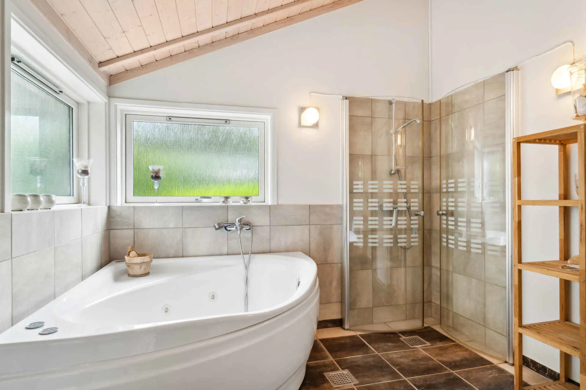 Zwei moderne Badezimmer sorgen für hohen Komfort, eines davon mit Spa und Sauna zur Erholung nach Strandtagen. Der offene Wohnbereich verbindet Küche, Essplatz und Wohnzimmer, sodass Mahlzeiten und gemütliche Abende bei jedem Wetter selbstverständlich sind.