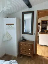 Das Haus verfügt über drei Schlafzimmer und insgesamt sechs Schlafplätze. Zwei Zimmer sind mit Doppelbetten ausgestattet, von denen eines in zwei Einzelbetten geteilt werden kann. Ein separates Nebengebäude bietet zusätzliche Privatsphäre, während ein kleines Büro- oder Kreativzimmer ideal für Rückzug, Konzentration oder Spielen ist.
