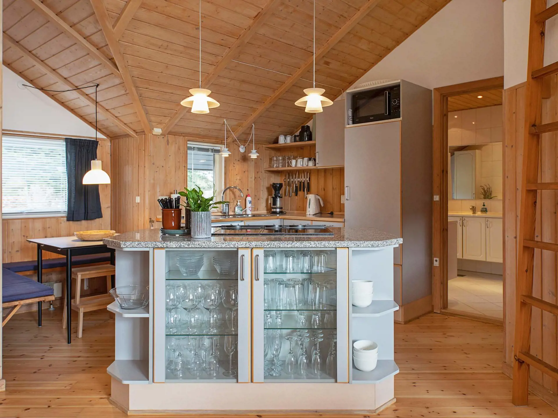 Vom gemütlichen Wohnbereich hat man schönen Ausblick zur teils überdachten Terrasse und weiter zum sonnigen Rasengrundstück. Die offen integrierte, helle Küche ist u.a. mit Cerankochfeld, separatem Backofen, Abzugshaube, Mikrowelle, Geschirrspüler und Kühlschrank mit Gefrierfach ausgestattet. Zudem gibt es nebenan im Schuppen einen zweiten Kühlschrank. Im Haus wurde auch eine energieeffiziente Luft-Luft-Wärmepumpe installiert, um so das Haus stromsparend und somit klimafreundlicher erwärmen zu können. Sie haben Zugriff auf WLAN, Blu-ray Lautsprecher sowie TV mit Chromecast für eigene Streaming-Dienste. Außerdem zwei helle Badezimmer mit Dusche. Es stehen im Haus drei Schlafzimmer mit jeweils zwei Schlafplätzen sowie Kinderbett und Hochstuhl für die Kleinen bereit.