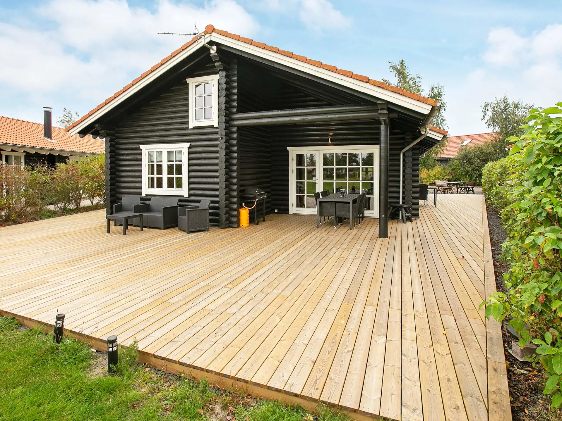 Das Ferienhaus liegt auf einem 370 m² großen Grundstück und hat eine 110 m2 große Terrassenfläche, von der 12 m2 überdacht sind. Für Sommerabende ist ein Gasgrill vorhanden. Nicht weit vom Haus liegt eine größere Gemeinschaftsfläche, die allen Bewohnern ringsum zur freien Verfügung steht. Hier gibt es viel Platz für den Freizeitspaß. Außerdem wohnen Sie nicht weit von Bowling, Golfplatz, Welcome Center, Put & Take Angelsee und zudem in der Nähe von Einkaufsmöglichkeiten und dem Ortskern.