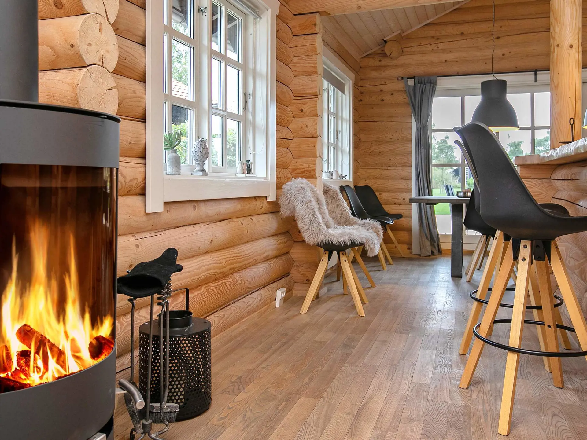 Das urgemütliche Ferienhaus stellt zur Erholung u.a. einen Whirlpool für zwei sowie eine Sauna für bis zu sechs Personen zur Verfügung. Der helle, offene Küchenbereich ist gut ausgestattet mit u.a. Kühl-Gefrier-Kombination, Ceranfeld, Heißluftofen und Geschirrspüler. Offener Wohn-/Essbereich für das Familienleben, inklusive wärmendem Kaminofen für gemütliche Abende. Zur technischen Ausstattung gehören u.a. WLAN, TV und Chromecast zum Streamen sowie DVD-Player. Außerdem ist ein Tischkicker vorhanden.