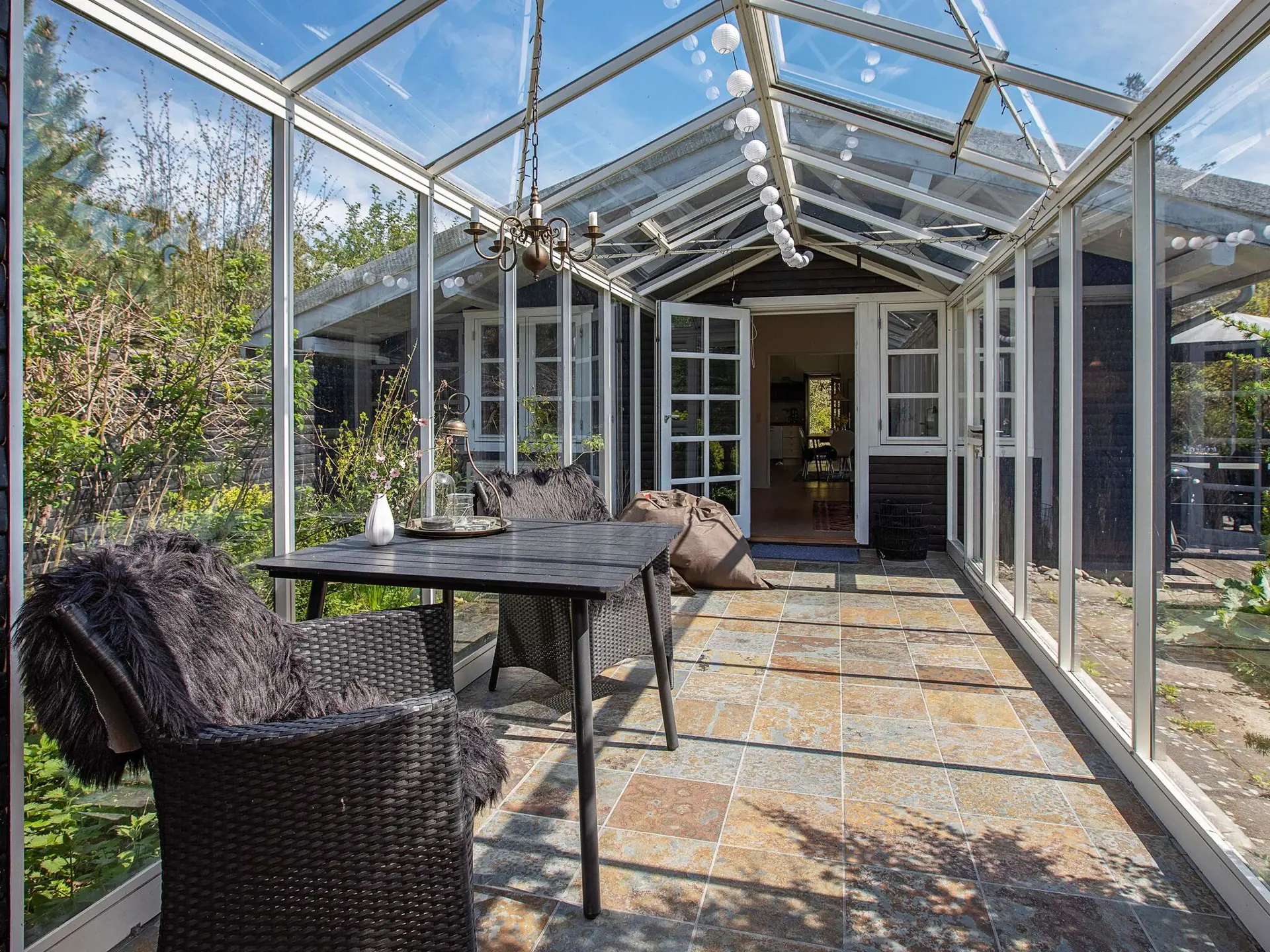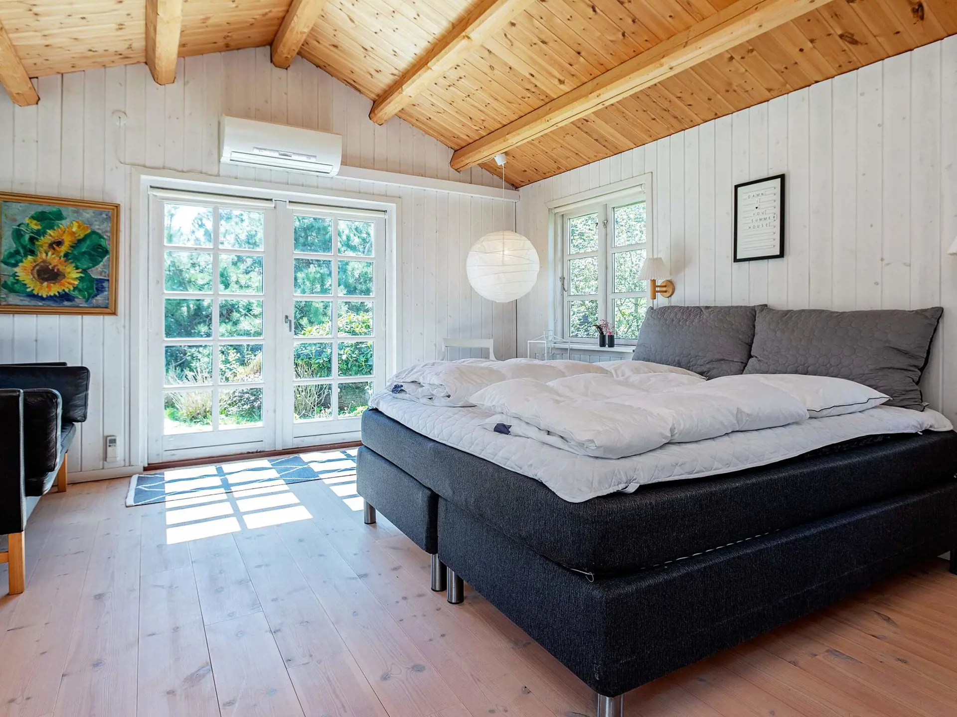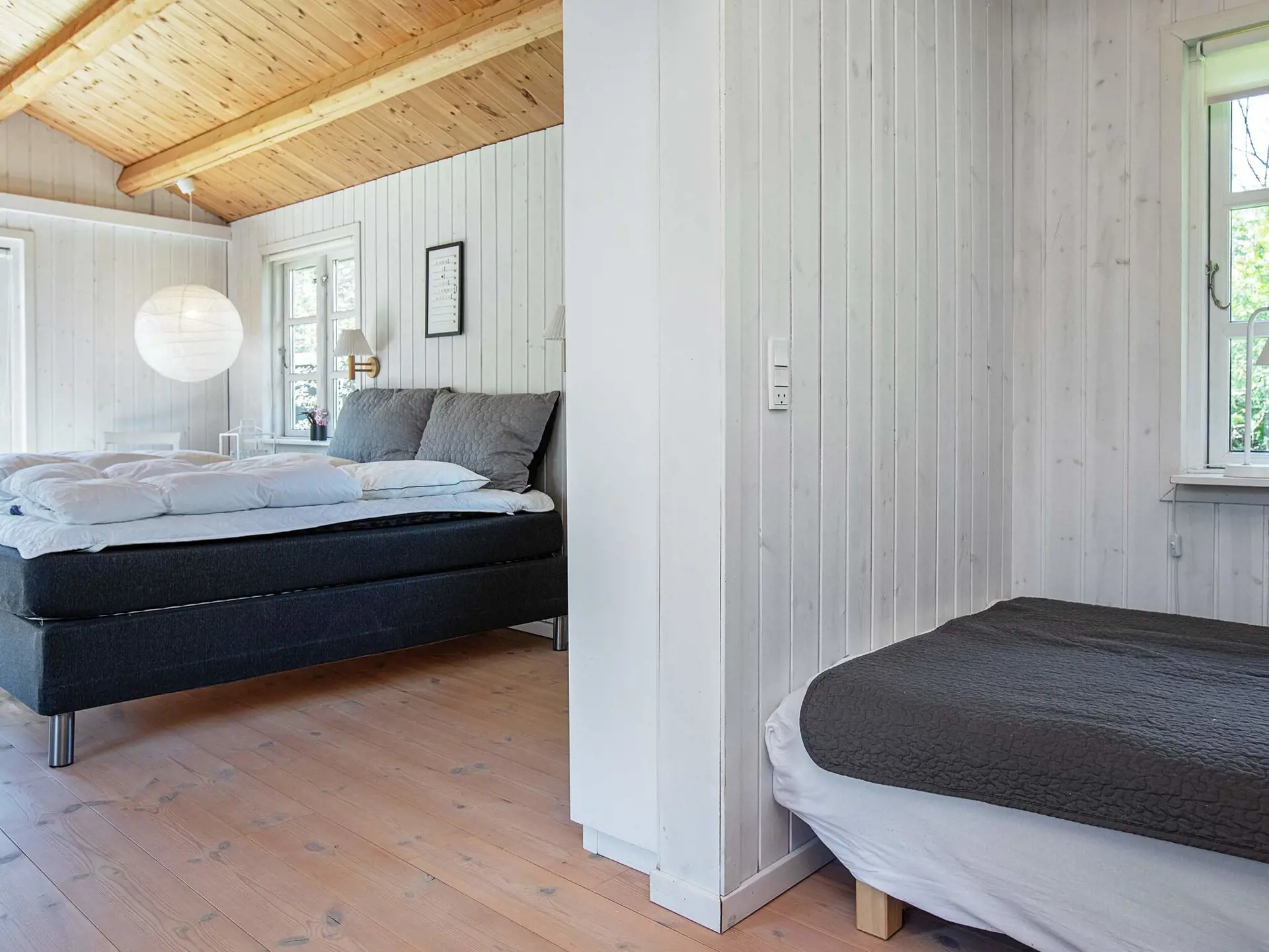 Im Ferienhaus zudem zwei Schlafzimmer mit je zwei Schlafplätzen in einem Doppelbett sowie ein drittes Zimmer mit vier Schlafplätzen in einem normal breiten und einem etwas schmaleren Doppelbett. Badezimmer mit WC, Waschbecken, Dusche und Fußbodenheizung. Kinderbett für die Kleinen. Waschmaschine im Schuppen. Auf dem Grundstück Fußballtor für Spiel uund Spaß sowie Grill für die schönen Abende. Zudem Gartenmöbel und einige Liegen.