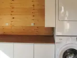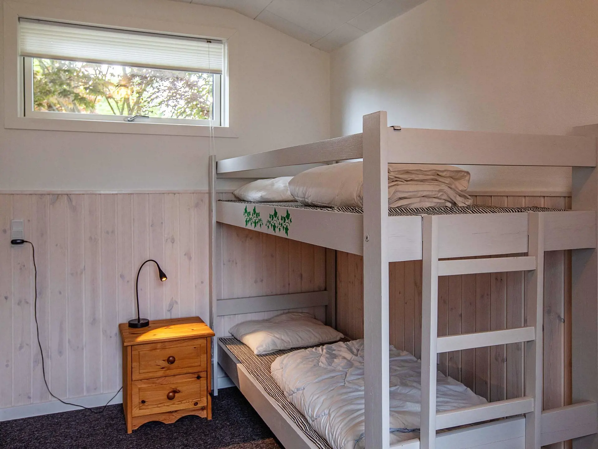 Das Ferienhaus hat einen offenen Küchen-/Wohnbereich mit Ess- und Sitzecke für das Familienleben sowie drei Schlafzimmer: eines mit Einzelbett, das zweite mit Doppelbett, das dritte mit Etagenbett mit zwei Kojen. Das Badezimmer ist ursprünglich und zweckmäßig mit Elektro-Fußbodenheizung. Waschmaschine und Wäschetrockner sind im Nebengebäude untergebracht.