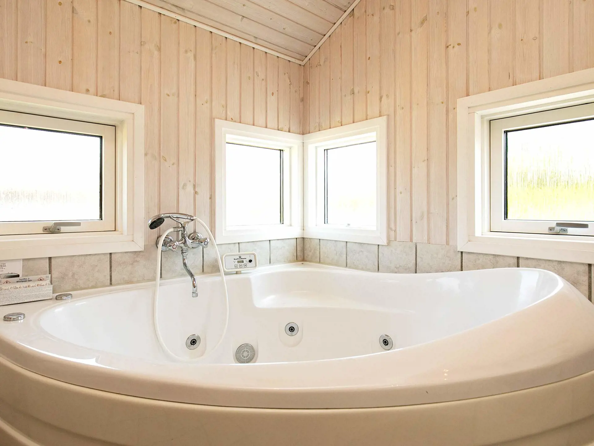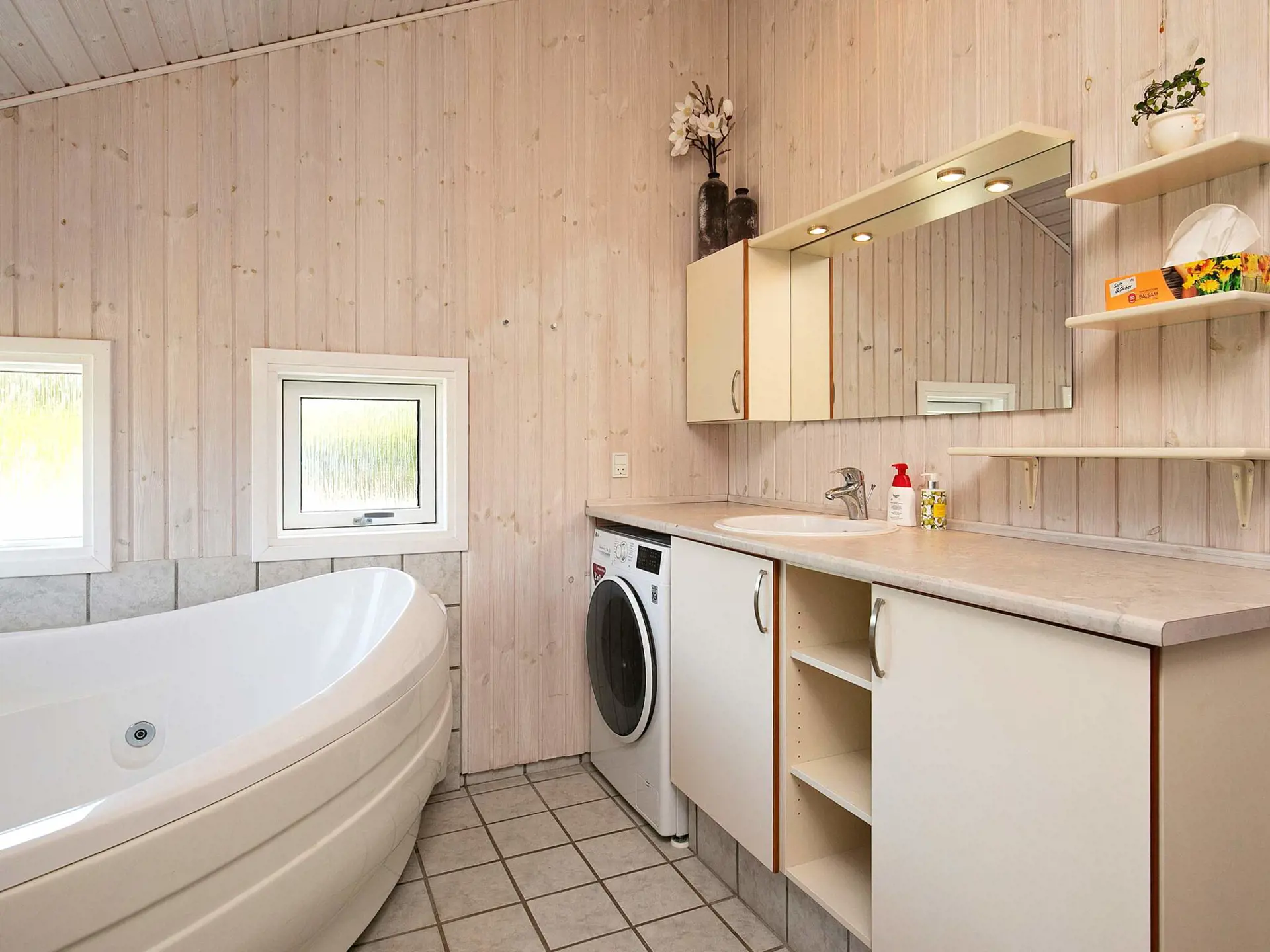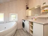 Dieses Ferienhaus eignet sich auch gut für eine größere Familie. Es bietet u.a. drei Schlafzimmer und ein Bad mit Whirlpool, Sauna sowie ein Gäste-WC. Zudem praktischer, kombinierter Waschtrockner im Bad.
