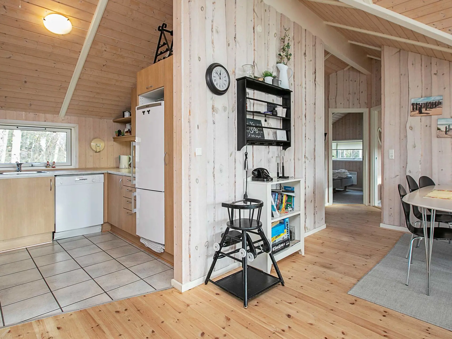 Im Außenbereich gibt es eine teils überdachte Holzterrasse für Grillabende und zudem eine Schaukel für die Kinder auf der Rasenfläche. Das Grundstück ist eingezäunt.