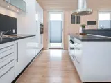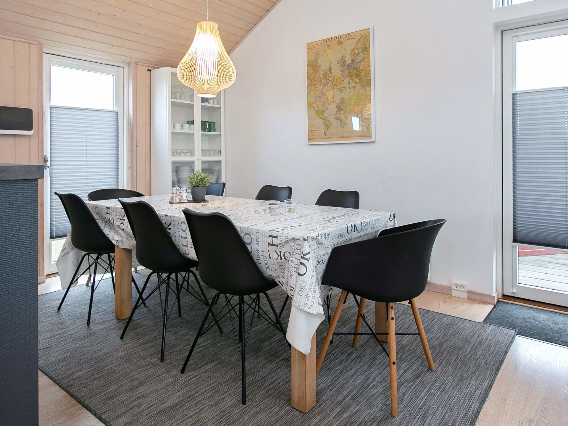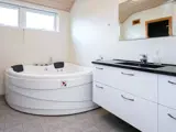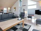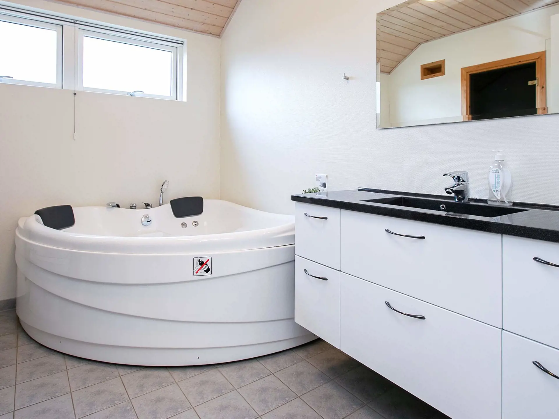 Dieses gebaute Ferienhaus liegt auf einem schönen Naturgrundstück ca. 1100 m von einem schönen Sandstrand und ca. 1000 m von Einkaufsmöglichkeiten entfernt. Kinder freuen sich über Schaukel und Sandkasten. Das Haus besitzt eine überdachte Terrasse, ein Bad mit Fussbodenheizung, Dusche, Whirlpool für 2 Personen und Sauna für 5-6 Personen, eine extra Toilette mit Waschmaschine und Trockner und eine offene Küche mit Cerankochfeldern, Mikrowelle, Kühlschrank und Geschirrspüler. Es gibt einen Fernseher mit DVD-Spieler und skandinavischen und deutschen Kanälen.