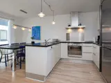 helles Parkett aus Esche und offener Küchen-/Aufenthaltsraum.