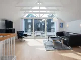 mit gutem Lichteinfall, offene Dachkonstruktion mit sichtbaren Balken,