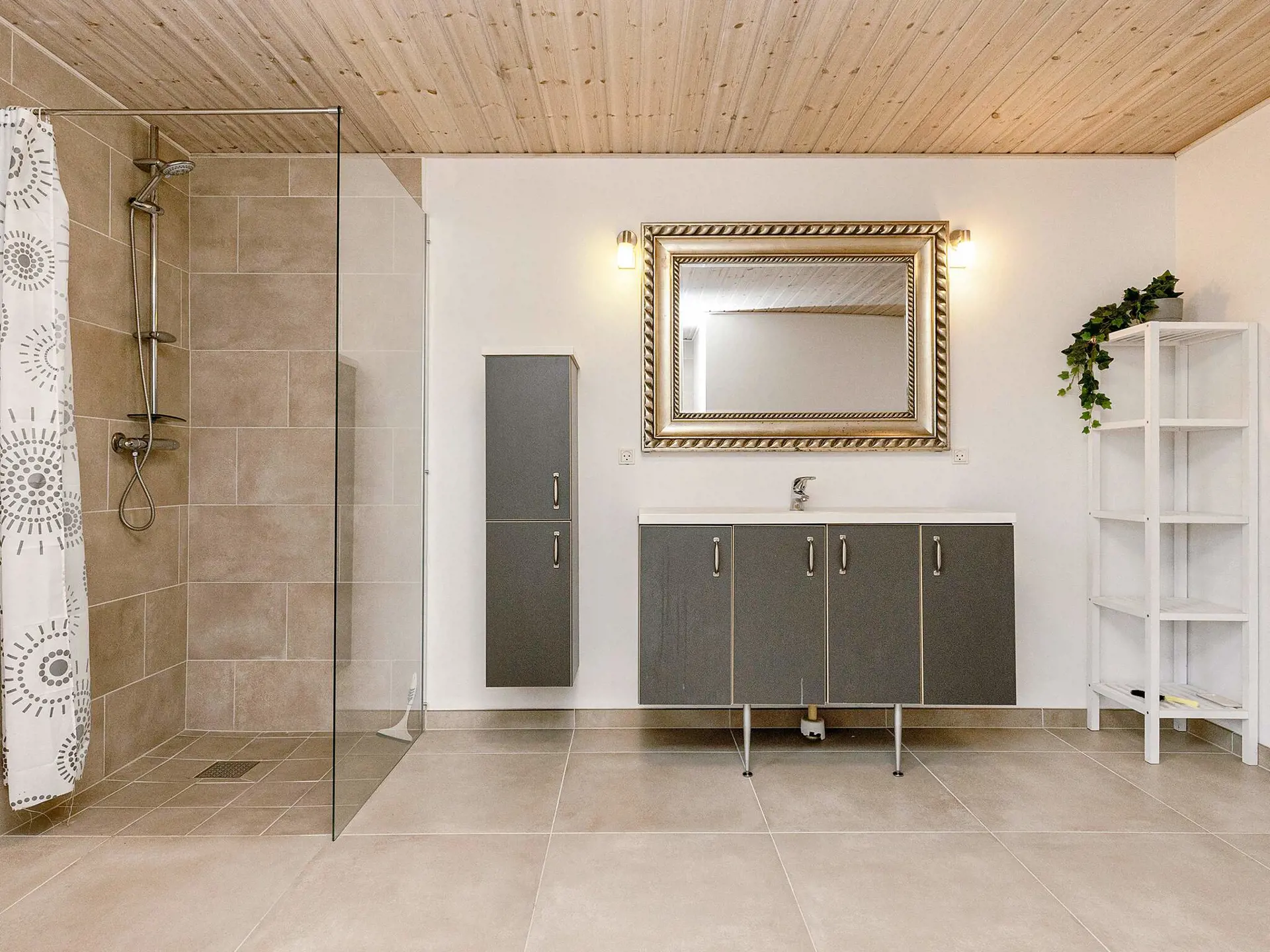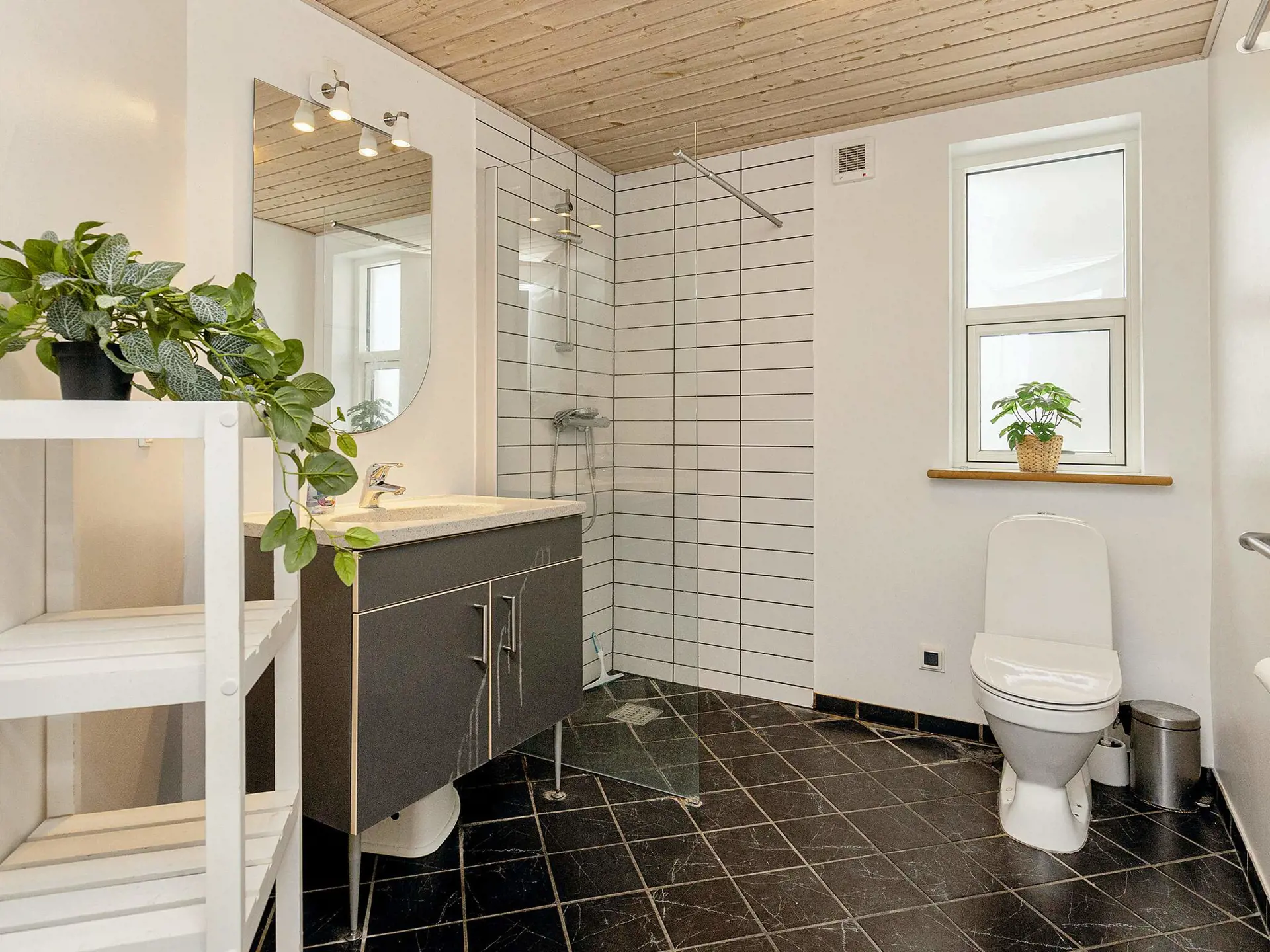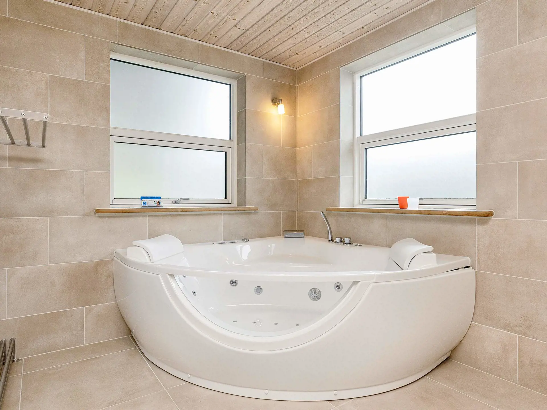 Das Ferienhaus hat vier helle Schlafzimmer und zwei große Lofts mit jeweils Platz für 2 Personen. Die beiden hellen Badezimmer verfügen über angenehme Fußbodenheizung, eines davon zudem über einen Whirlpool für erholsame Stunden. Darüber hinaus gibt es einen praktischen Hauswirtschaftsraum mit Fliesenboden und Platz für Schuhe und Oberbekleidung sowie einem extra Kühl-/Gefrierschrank.
