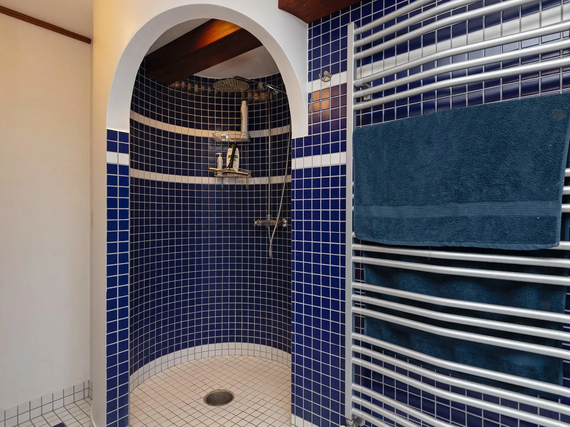 Die Schlafplätze sind aufgeteilt auf zwei Zimmer mit je einem Doppelbetten, ein drittes Zimmer mit einem Doppelbett und einem Einzelbett, ein viertes Zimmer mit zwei Einzelbetten und einen Hems mit zwei Zustellbetten. Außerdem zwei Badezimmer mit Toilette, Waschbecken und Dusche, eines davon zudenm mit Fußbodenheizung, im Haus.