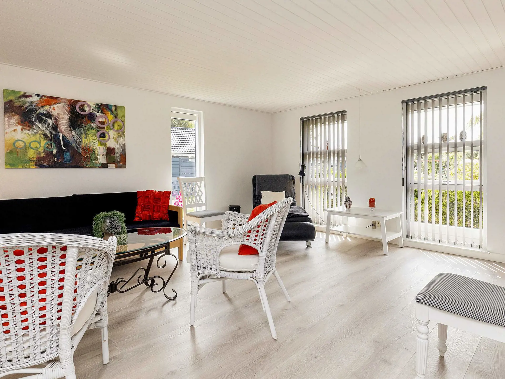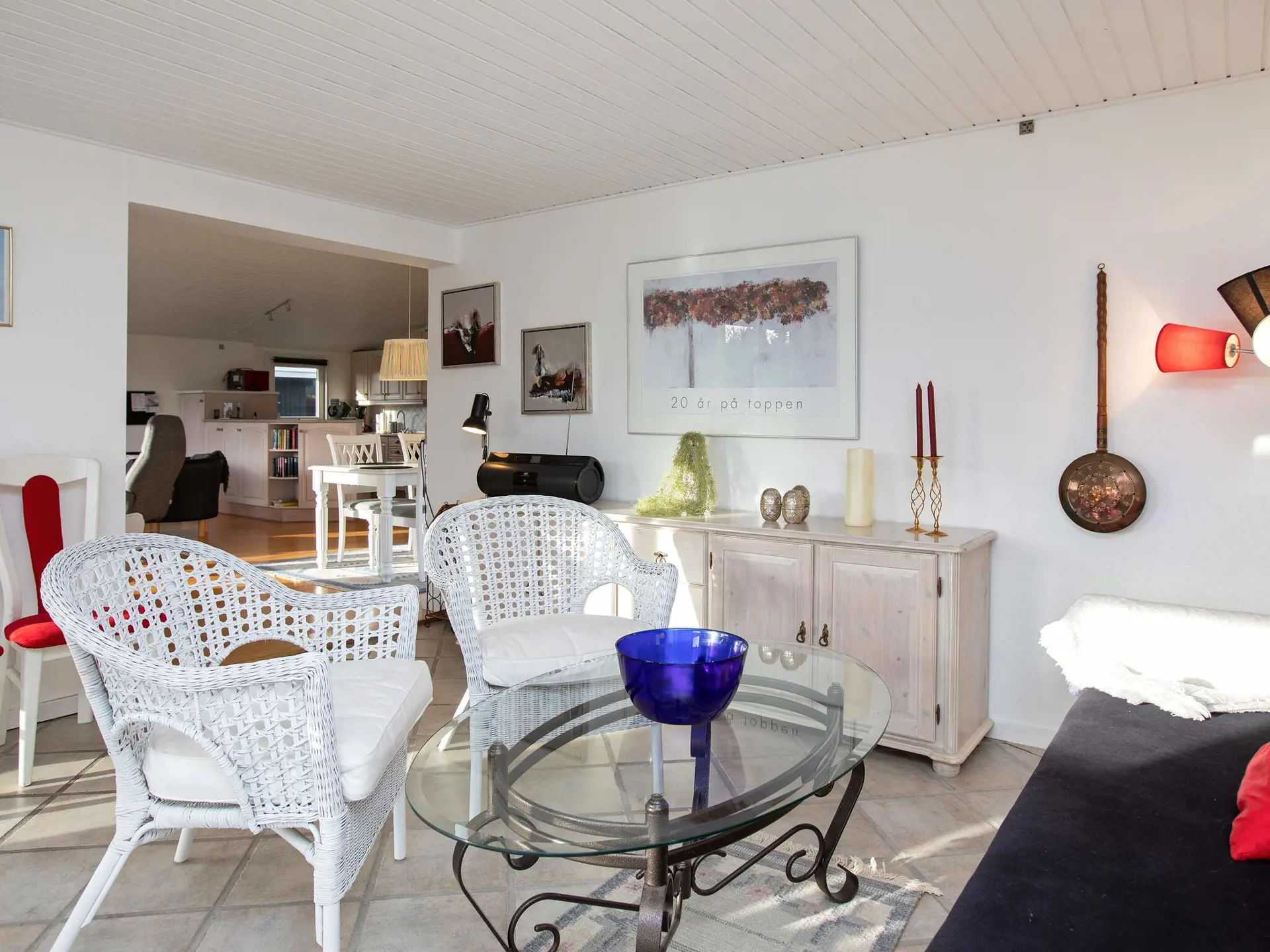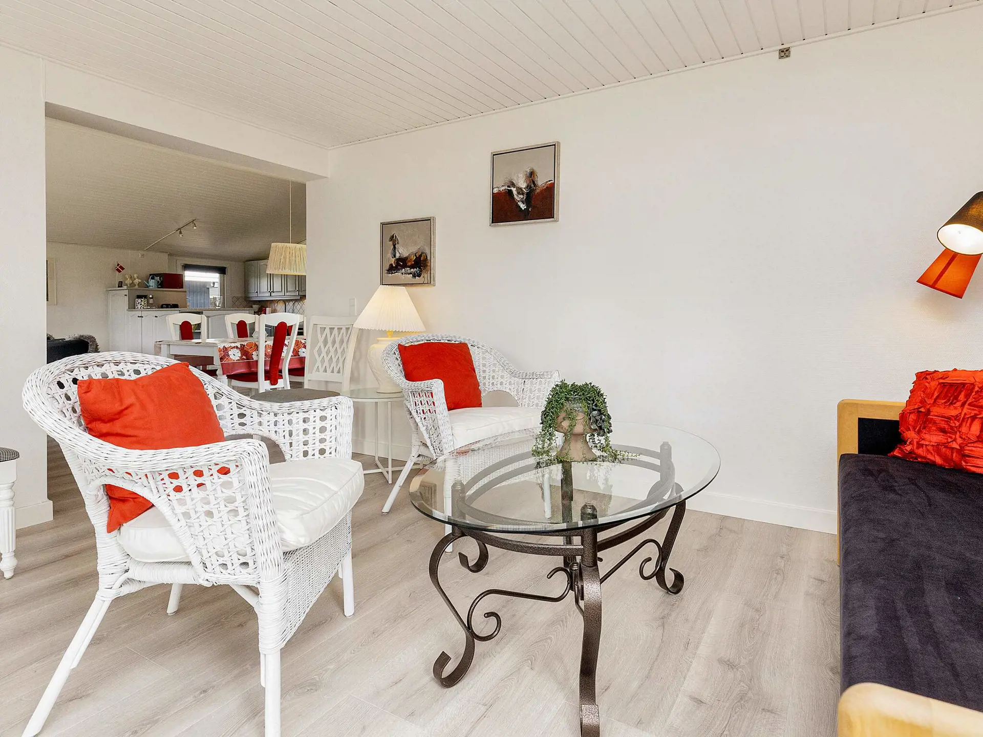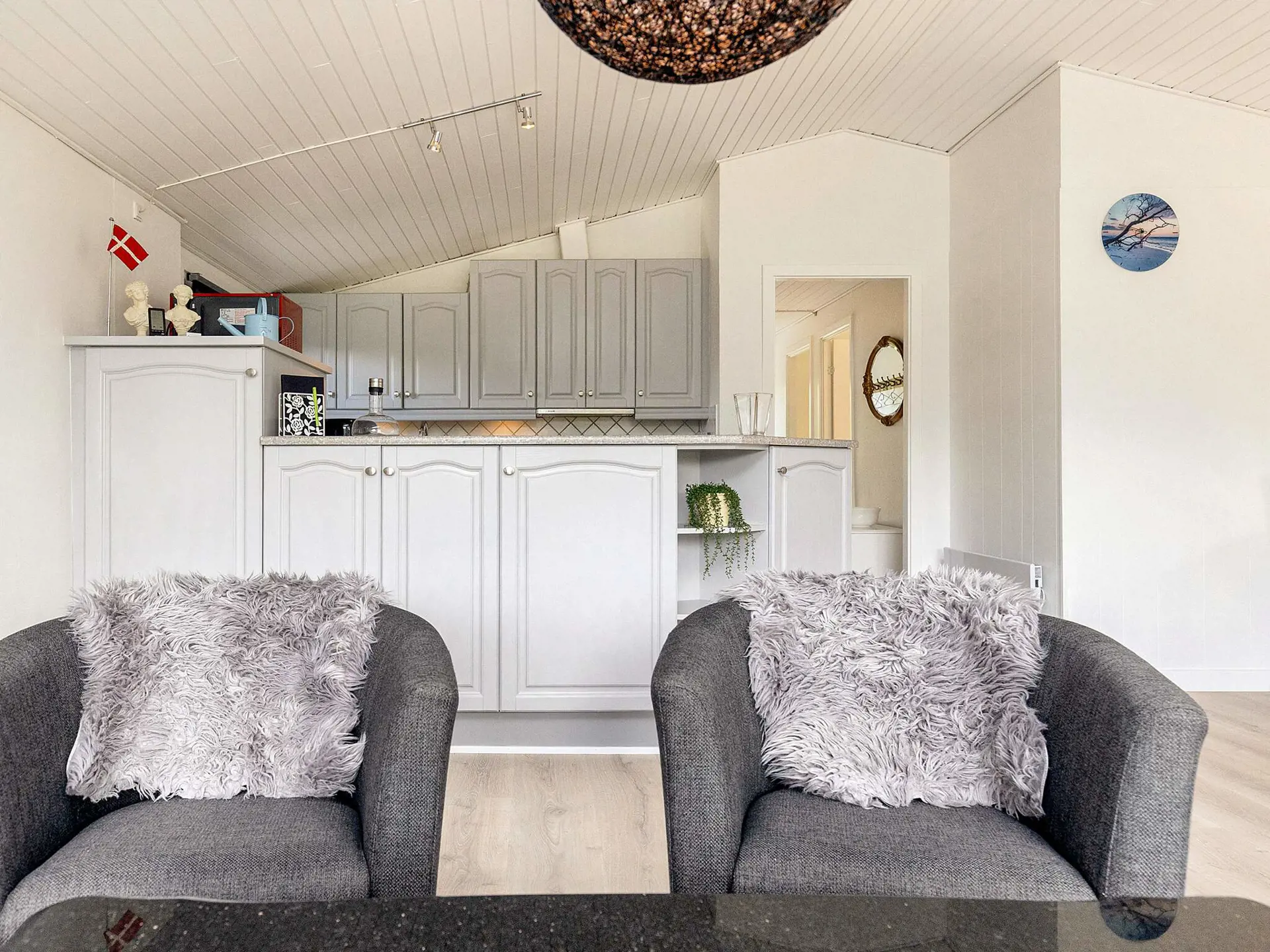 Die Küche ist u.a. mit Ceran-Kochfeld und Spülmaschine eingerichtet. Der Gefrierschrank befindet sich im Geräteschuppen. Das Bad hat angenehme Fußbodenheizung und eine kleinere Waschmaschine. Draußen erwartet Sie teilweise überdachte Terrassenfläche, sodass Sie immer den optimalen Platz an der frischen Luft finden können.