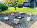 Das Haus verfügt über einen schönen Garten mit Rasenflächen (Ansaat im Herbst 2023). Genießen Sie die große Feuerstelle im Garten, wenn Sie sich am Feuer versammeln möchten. Aufgrund der ruhigen Lage des Hauses kommen oft Rehe und Hasen vorbei. Nicht an Jugendgruppen vermietbar.