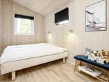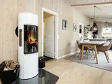 Das Ferienhaus hat ein Wohnzimmer mit Wärmepumpe und Holzofen, das in offener Verbindung mit einer schönen Küchenecke mit Induktionsherd, Backofen, Kühl-/Gefrierschrank und Geschirrspüler liegt. Es gibt drei Schlafzimmer mit jeweils einem Doppelbett. Badezimmer mit Toilette, Dusche und Waschmaschine.