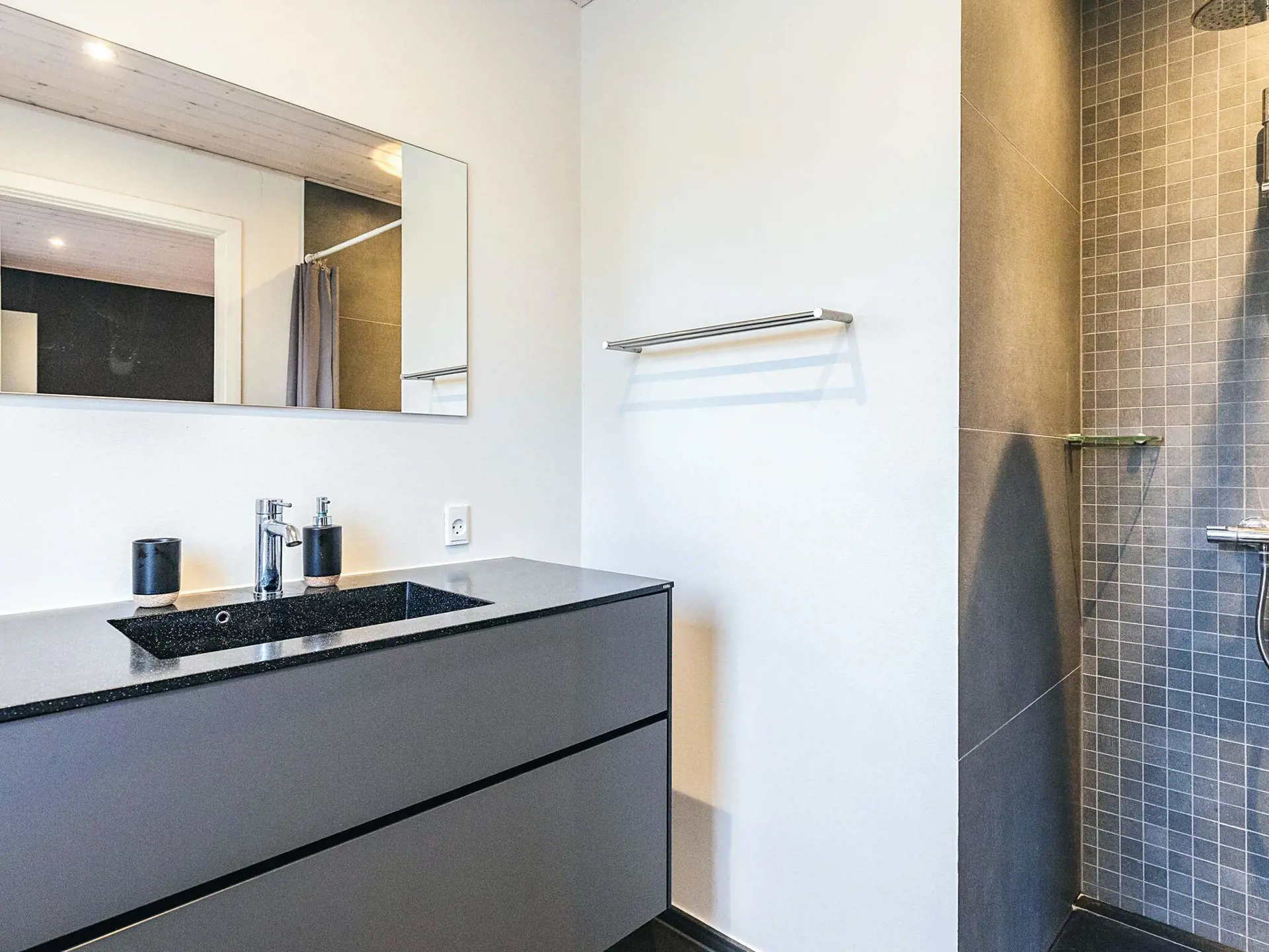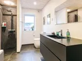 Im gesamten Haus gibt es Fußbodenheizung, die über eine energieeffiziente Luft/Wasser-Wärmepumpe betrieben wird. Das Haus bietet drei Schlafzimmer, alle mit Doppelbett, sowie zwei zusätzliche Schlafplätze auf dem Hems. Es gibt zwei Badezimmer mit WC, Waschbecken und Dusche; eines davon verfügt zusätzlich über eine Badewanne und eine Waschmaschine.