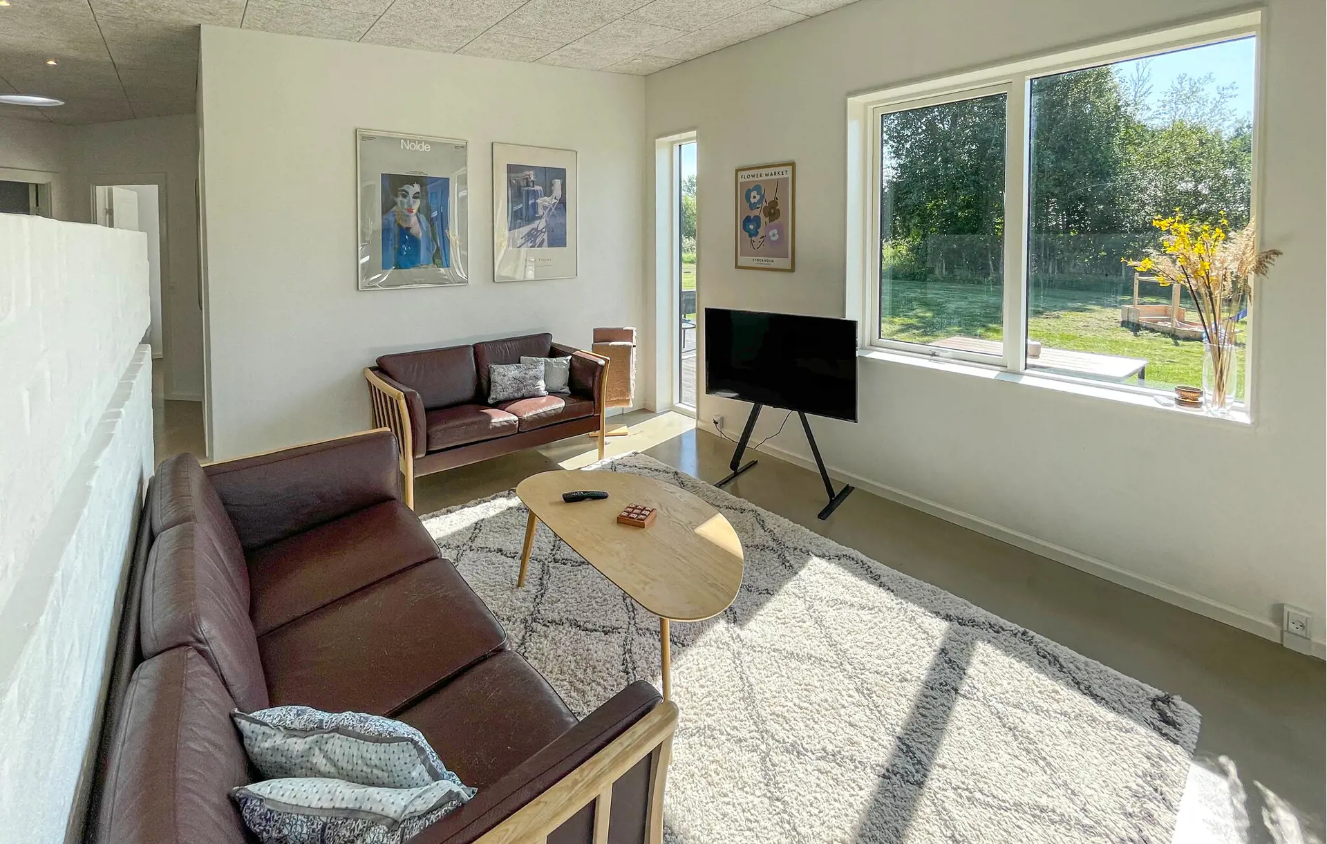 Ihr geschmackvoll eingerichtetes Ferienhaus ist der ideale Ort für eine Auszeit mit der Familie oder Freunden. Der helle Wohnbereich mit seinen großen Fenstern schafft eine freundliche Atmosphäre und eröffnet den Blick auf Terrasse und Garten. Beginnen Sie den Tag mit einem entspannten Frühstück am elegant gedeckten Esstisch. Lehnen Sie sich danach auf den gemütlichen Sofas zurück und nehmen Sie sich Zeit für ein gutes Buch oder angenehme Gespräche in geselliger Runde.