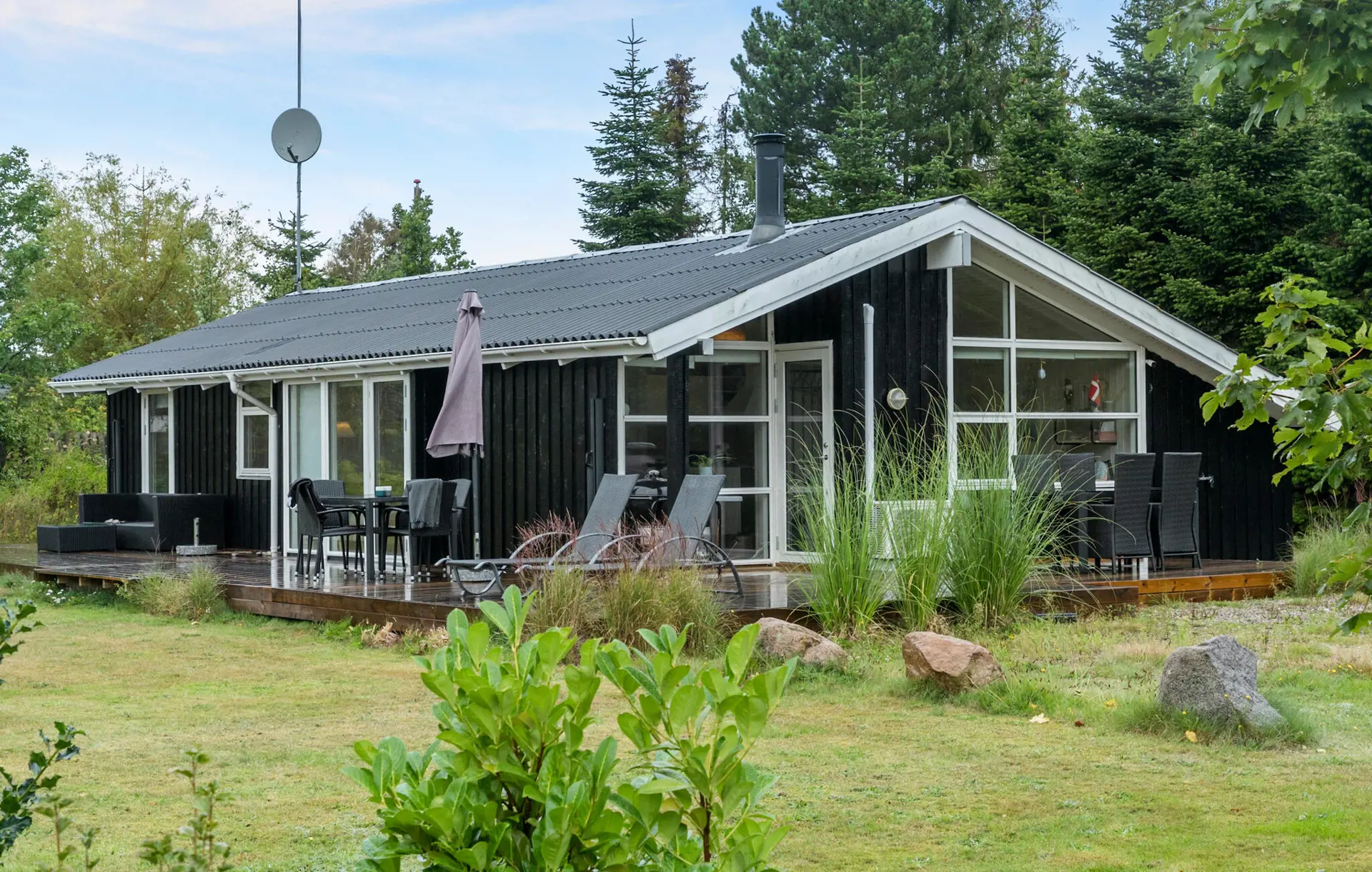 Verbringen Sie entspannte Stunden auf der Holzterrasse vor dem Haus. Legen Sie die Füße hoch, genießen Sie die ruhige Atmosphäre und beobachten Sie die Kinder beim Spielen auf der Rutsche. Am Ende des Tages kommt die ganze Familie zu einem leckeren Grillabend zusammen.