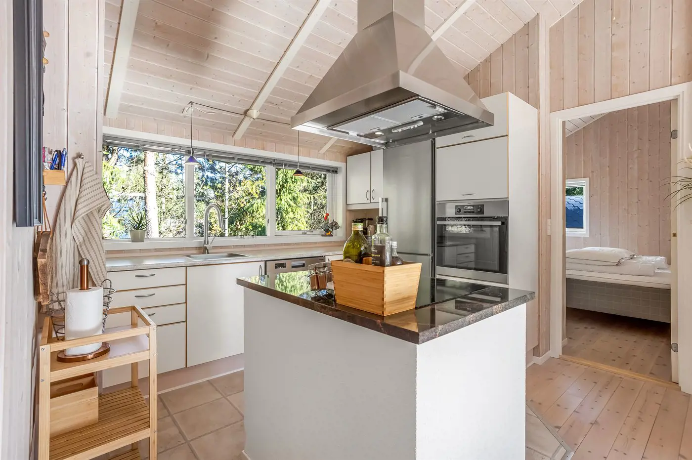 Das Haus ist mit einer großen und einladenden Wohnküche eingerichtet, in der man sich sofort wohlfühlt. Die vielen großen Fenster lassen das Licht hereinströmen und schaffen eine warme und behagliche Atmosphäre.