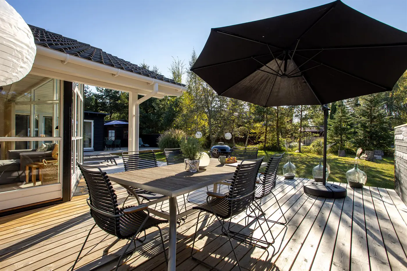 Auf der großen, schönen Terrasse könnt ihr das Leben im Freien in vollen Zügen genießen – entspannt euch in den Sonnenliegen, bereitet leckere Mahlzeiten auf dem Grill zu und genießt einfach die gemeinsame Zeit. Das Haus liegt in der Nähe des schönen Naturwaldes von Bøtø und des angrenzenden Vogelschutzgebiets – eine herrliche Lage, die Ruhe, Erholung und viel Natur vereint.