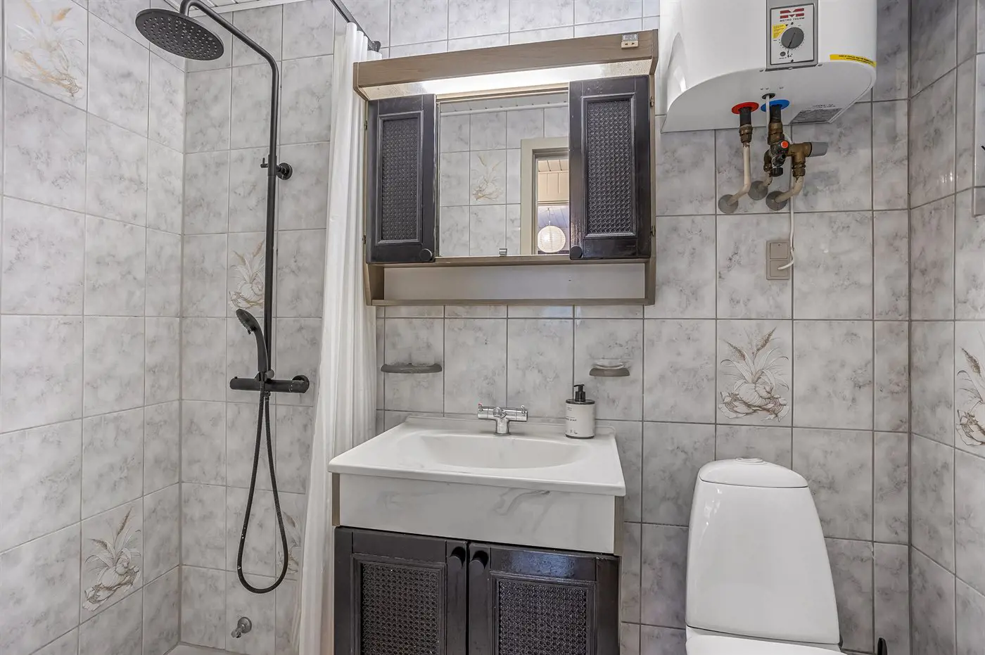 Es gibt 1 Badezimmer mit Dusche und 1 Toilette.
