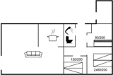 Die Schlafplätze verteilen sich auf 3 Schlafräume. 2 Schlafplätze in einem Doppelbett. 2 Schlafplätze in Einzelbetten. 2 Schlafplätze in einem Etagenbett. Ferner steht ein Kinderbett zur Verfügung.