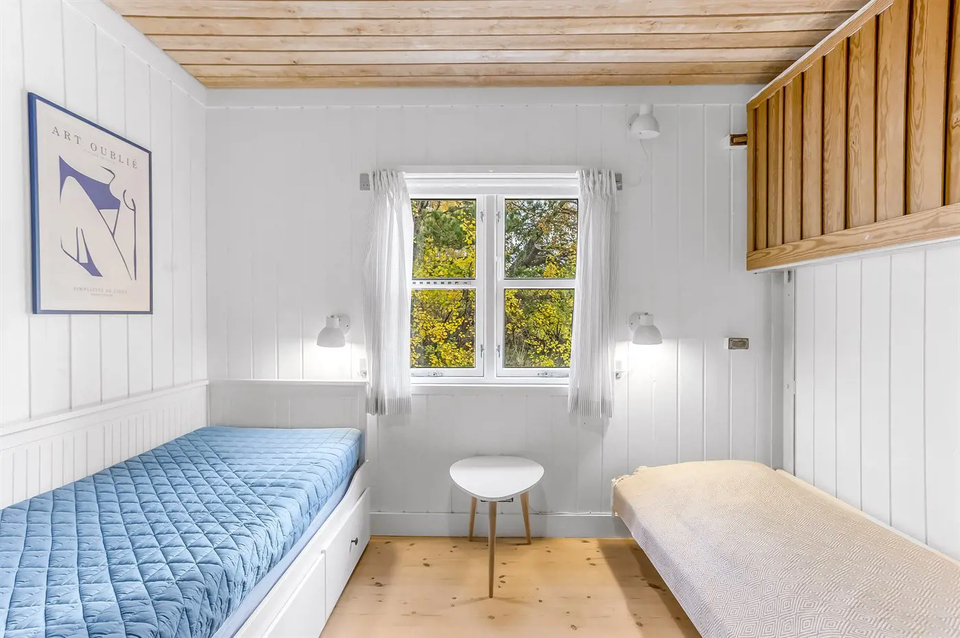 Die Schlafplätze verteilen sich auf 2 Schlafräume. 2 Schlafplätze in einem Doppelbett. 2 Schlafplätze in Einzelbetten. 2 Schlafplätze auf einer Doppelschlafcouch.