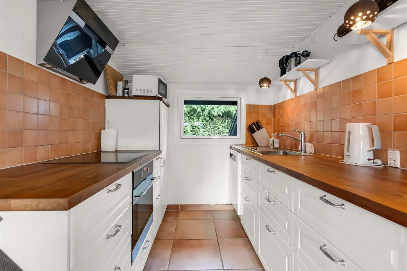 Die Küche ist mit Kühlschrank ausgestattet. Außerdem gibt es 4 Induktions-Kochzonen, Umluftofen, Mikrowelle sowie Geschirrspüler.