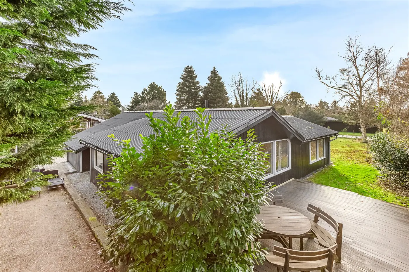 Das Haus liegt auf einem abgeschirmten Grundstück – nicht weit vom Strand und vom Zentrum von Marielyst entfernt.