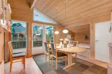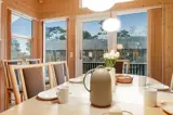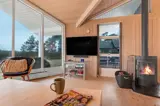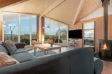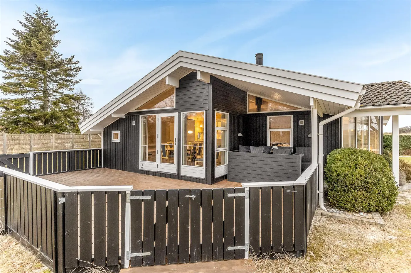 Nur 50 Meter vom Wasser und Deich entfernt, bietet das Haus von mehreren Stellen aus – unter anderem vom Wohnzimmer und dem offenen Küchen-Essbereich – einen Blick auf den Garten und den Deich. Es gibt eine herrliche Terrasse, die sowohl überdacht als auch offen ist. Außerdem steht am Ferienhaus eine Außendusche zur Verfügung, ideal nach einem Sprung ins herrliche Meer oder einen Tag am Sandstrand.