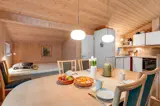 Die Küche ist mit Kühlschrank ausgestattet. Außerdem gibt es 4 Induktions-Kochzonen, Umluftofen, Mikrowelle sowie Geschirrspüler.