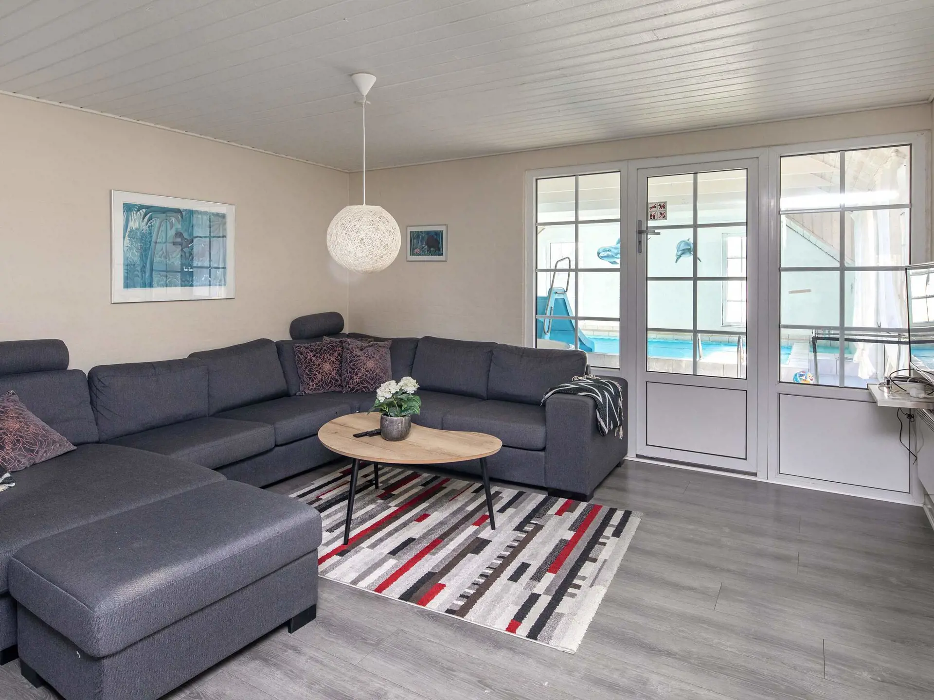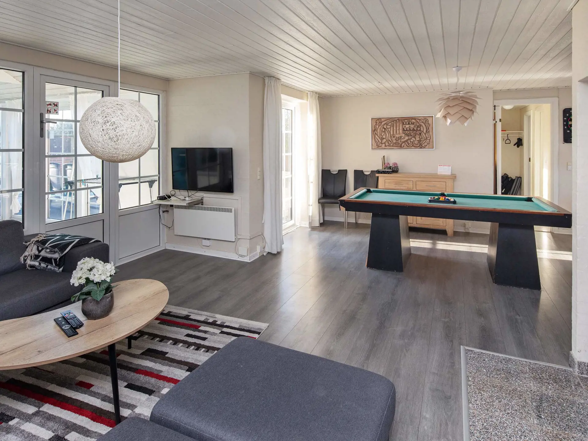 Der große Küchen-/Wohnbereich mitten Essecke bildet den Mittelpunkt des Hauses und grenzt an den Poolbereich. Die Kücheneinrichtung wurde 2021 erneuert. Zum Zeitvertreib stehen Freizeitaktivitäten wie Billard und Tischtennis zur Auswahl.
