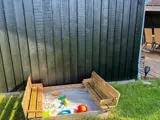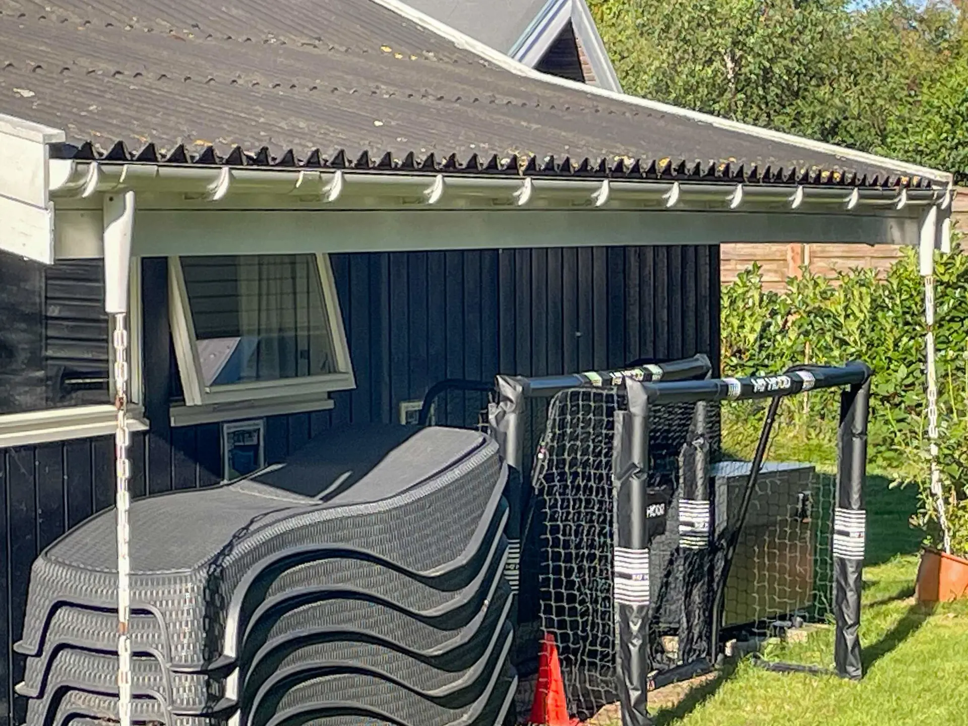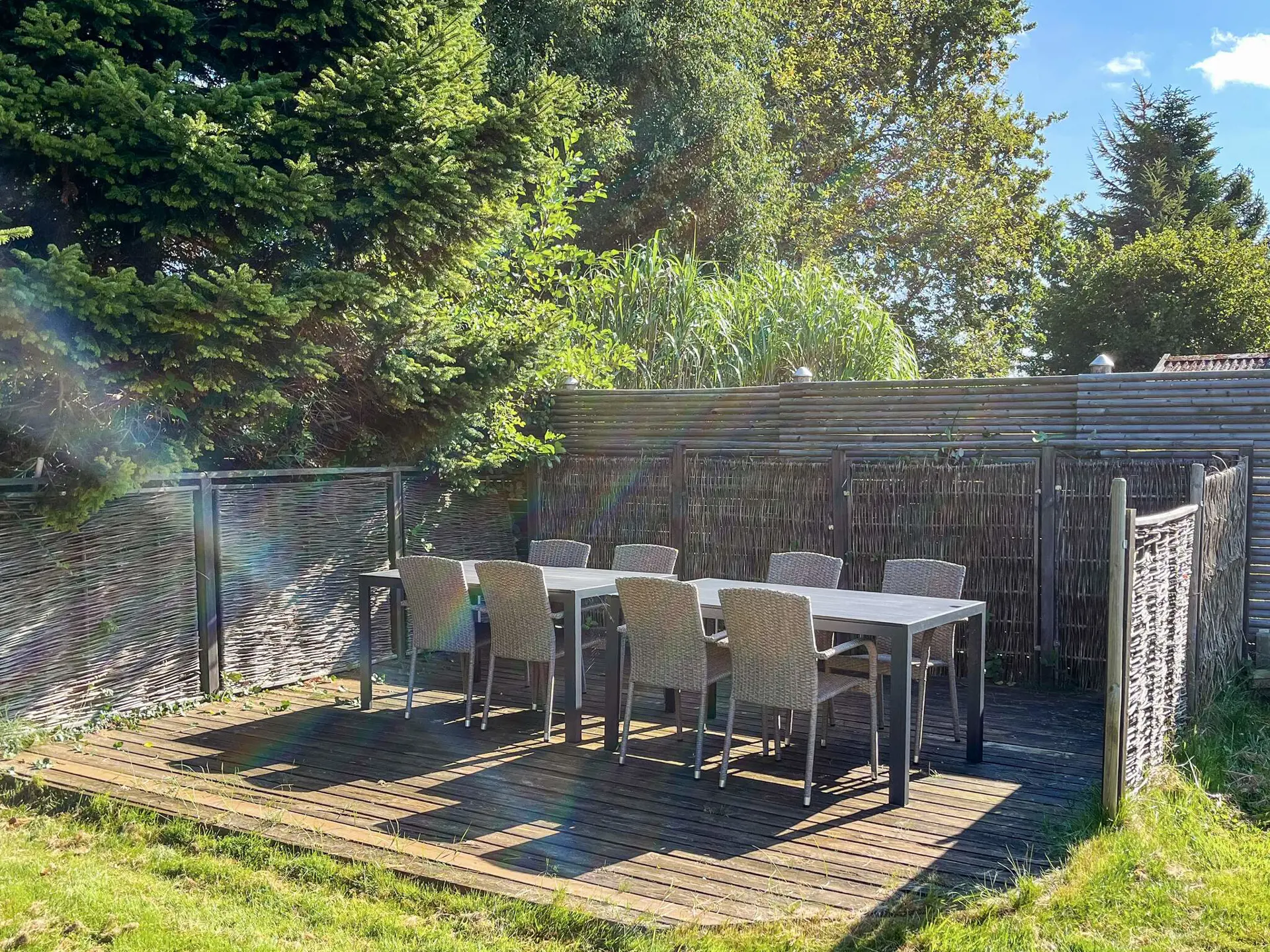 Vom Poolbereich aus haben Sie Zugang zu einer teilweise abgeschirmten Südterrasse, auf der Sie auf den Gartenmöbeln entspannen können. Im 1000 m² großen Garten finden Sie außerdem ein Fußballtor. Der Garten ist mit mehreren Holzterrassen ausgestattet.
