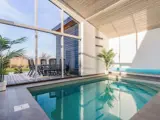 Einrichtung und Ausstattung: Das Herzstück des Ferienhauses ist die helle und moderne Wohnküche mit Panoramafenster zur schönen Terrasse. Der einladende Innenpool mit integrierter Treppe und bunten LED-Leuchten lädt zum Spielen und Genießen ein. Die gut ausgestattete Küche bietet alles, was Sie brauchen: Geschirrspüler, separater Kühl- und Gefrierschrank, Induktionskochfeld, Backofen, Mikrowelle und Nespresso-Kaffeemaschine. Es gibt viel Platz für schöne Mahlzeiten, sowohl drinnen als auch auf den beiden sonnigen Holzterrassen.