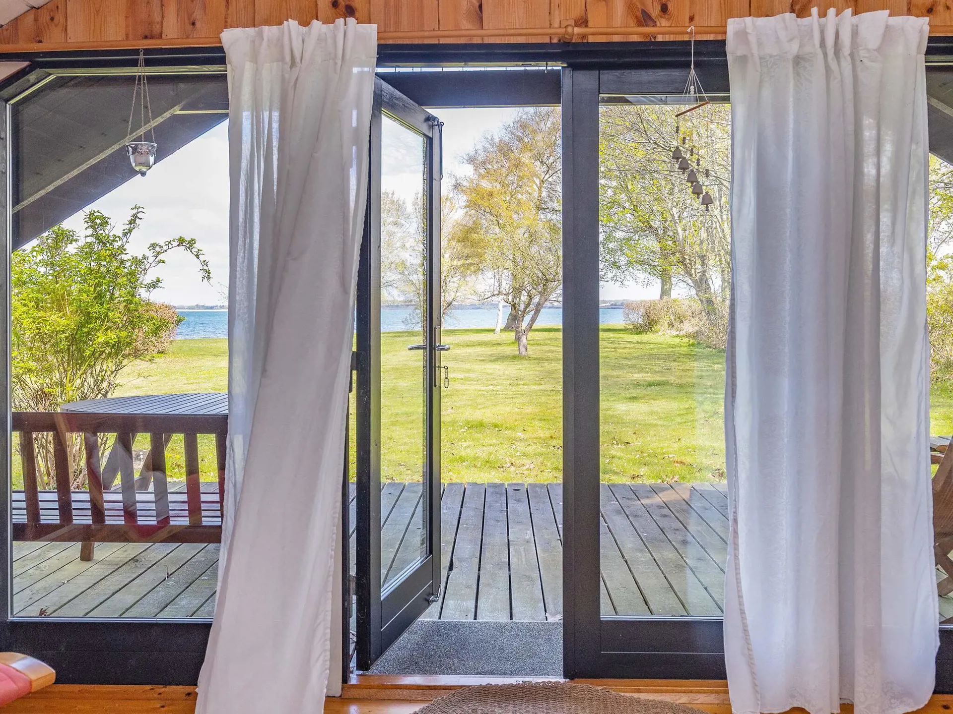Draußen auf dem gemütlichen Grundstück gibt es eine offene Terrassenfläche mit Gartenmöbeln und Grill, auf der Sie den ganzen Tag sitzen und das Treiben auf dem Wasser verfolgen können. Für die Kleinen gibt es einen Sandkasten mit Deckel.