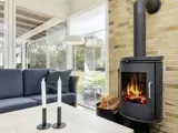 Im Wohnzimmer gibt es einen Fernseher mit Chromecast sowie einen Satellitenanschluss mit deutschen Sendern zur Auswahl. Glasfasernetzwerk vorhanden. Das Ferienhaus wird mittels einer Luft/Luft-Wärmepumpe und einem Holzofen im Wohnzimmer sowie elektrischen Heizkörpern in den Zimmern beheizt.